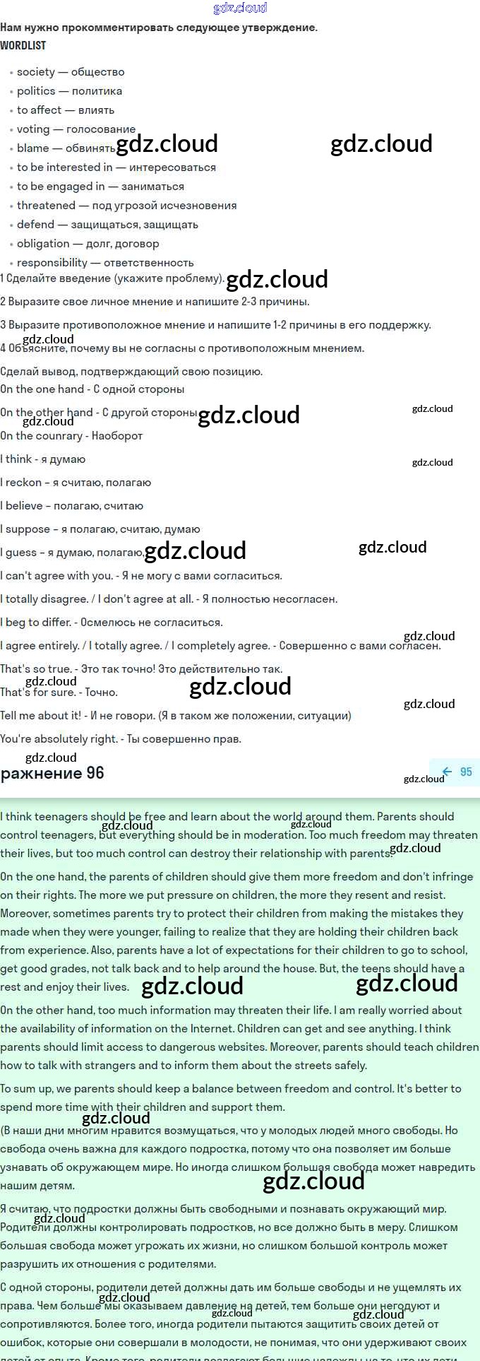 Ответ на задание 96 Учебник Английский язык за 11 (одиннадцатый) класс Биболетова, Бабушис, Снежко Enjoy English 2017