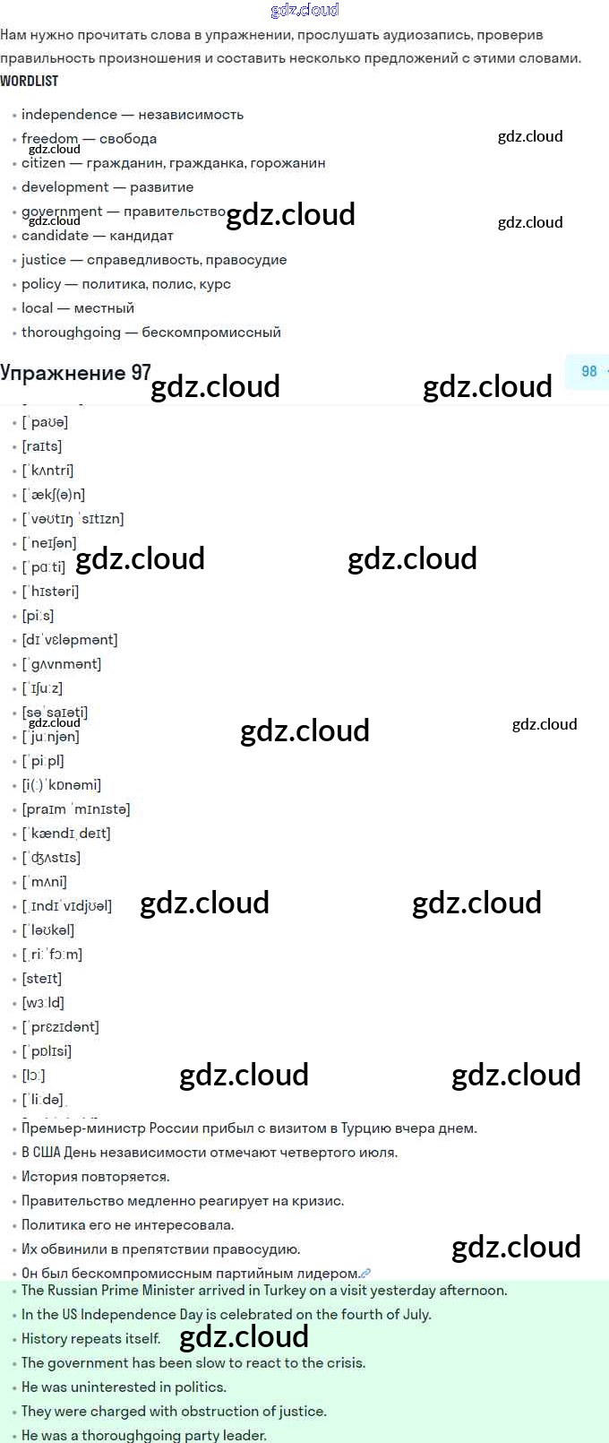 Ответ на задание 97 Учебник Английский язык за 11 (одиннадцатый) класс Биболетова, Бабушис, Снежко Enjoy English 2017