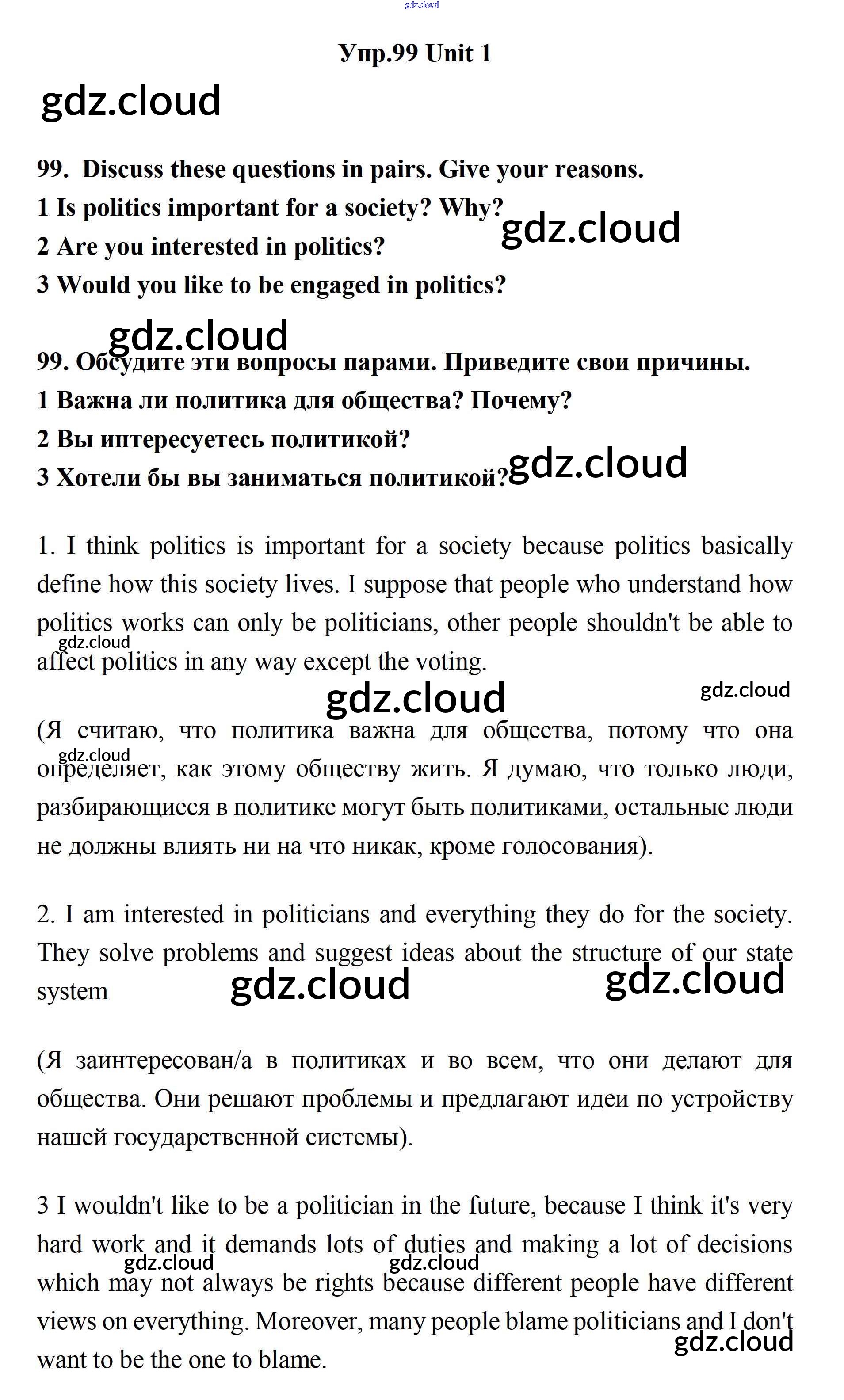 Ответ на задание 99 Учебник Английский язык за 11 (одиннадцатый) класс Биболетова, Бабушис, Снежко Enjoy English 2017