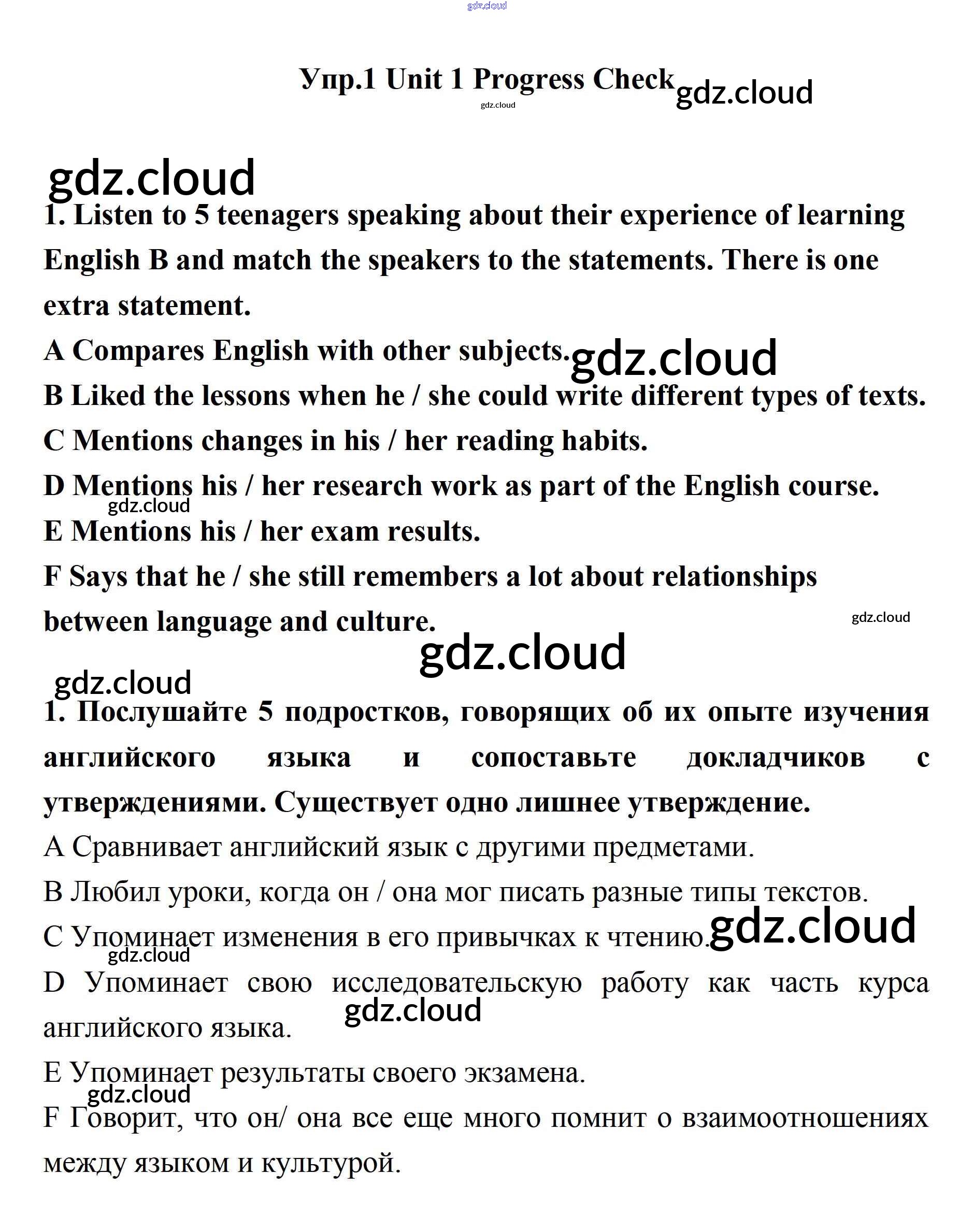 Progress Check Ответы. Unit 1. Young People in Society по Английскому языку 11 класс Учебник Биболетова Enjoy English Дрофа