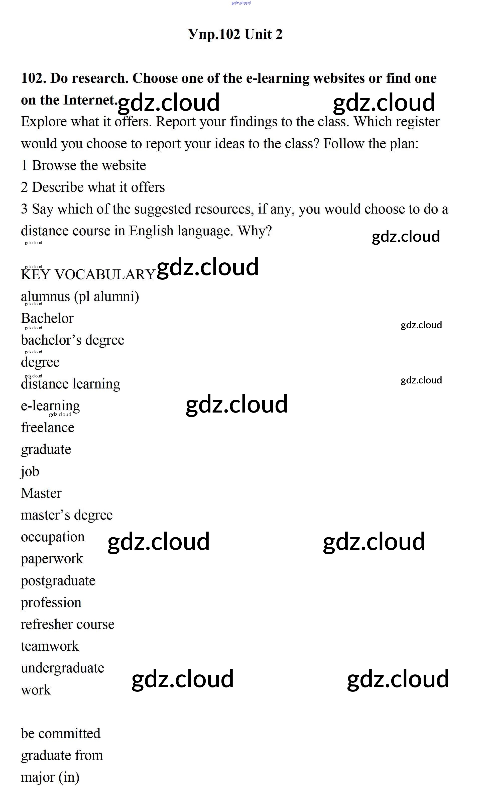 Ответ на задание 102 Учебник Английский язык за 11 (одиннадцатый) класс Биболетова, Бабушис, Снежко Enjoy English 2017