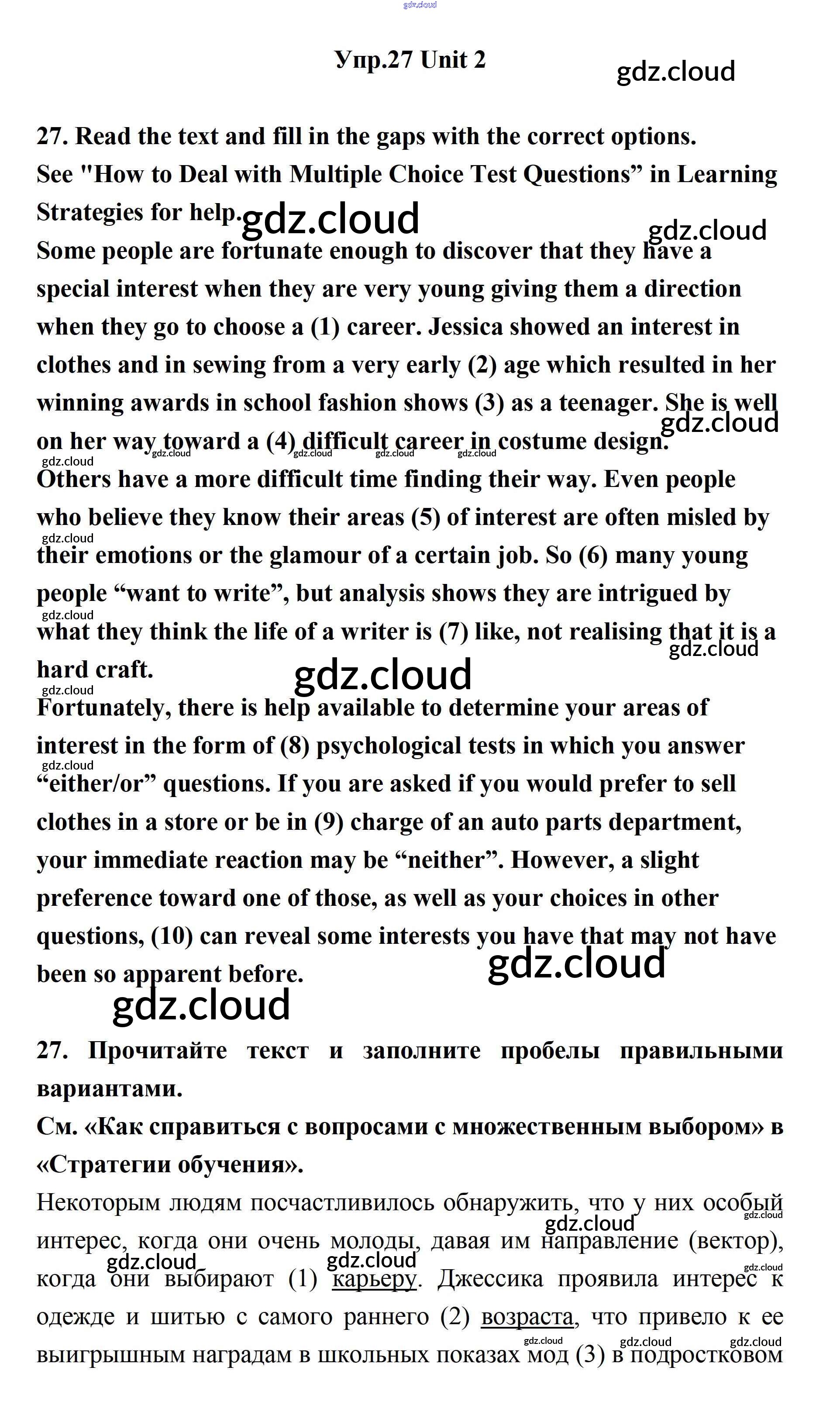 Ответ на задание 27 Учебник Английский язык за 11 (одиннадцатый) класс Биболетова, Бабушис, Снежко Enjoy English 2017