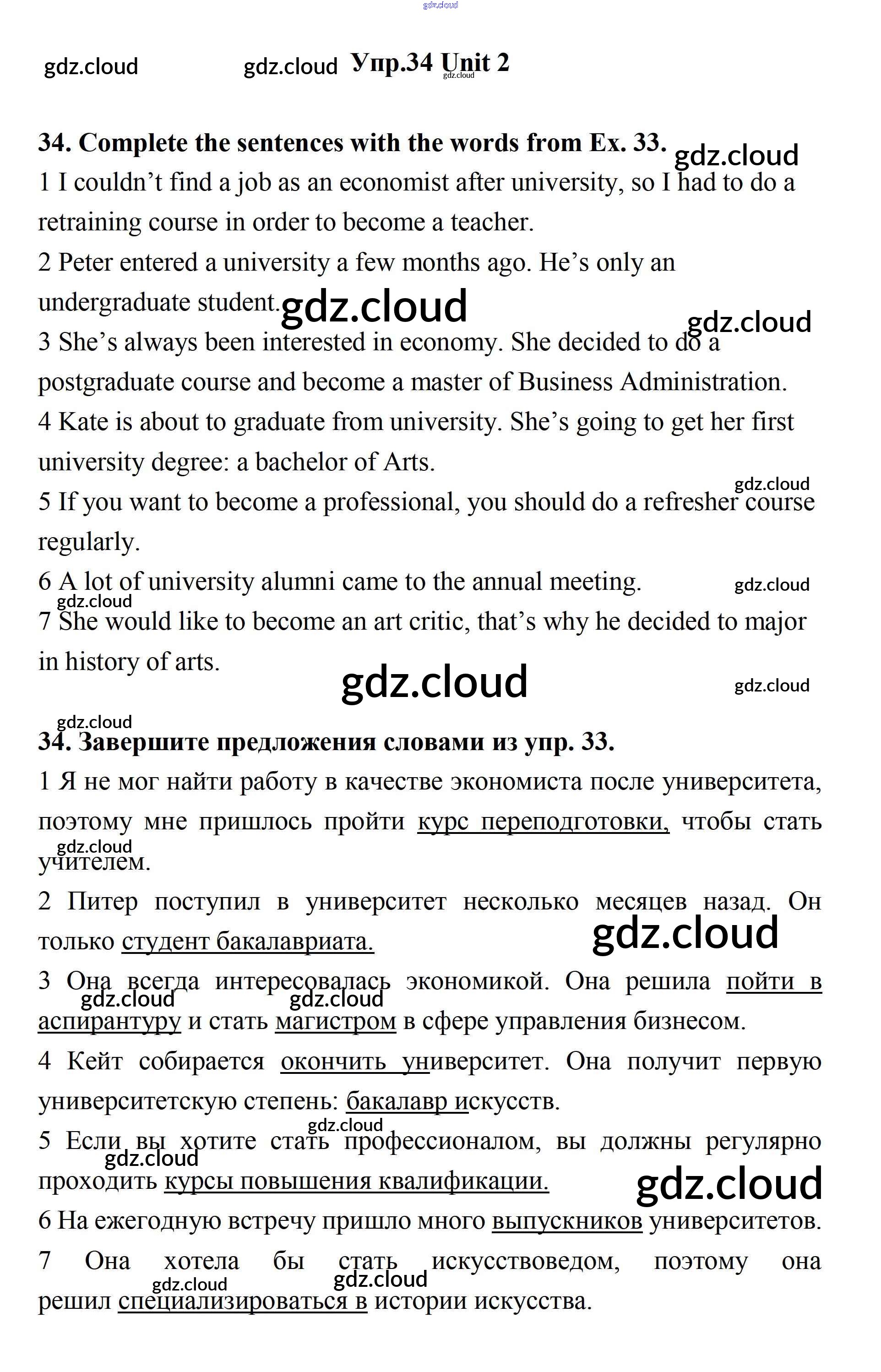 Ответ на задание 34 Учебник Английский язык за 11 (одиннадцатый) класс Биболетова, Бабушис, Снежко Enjoy English 2017