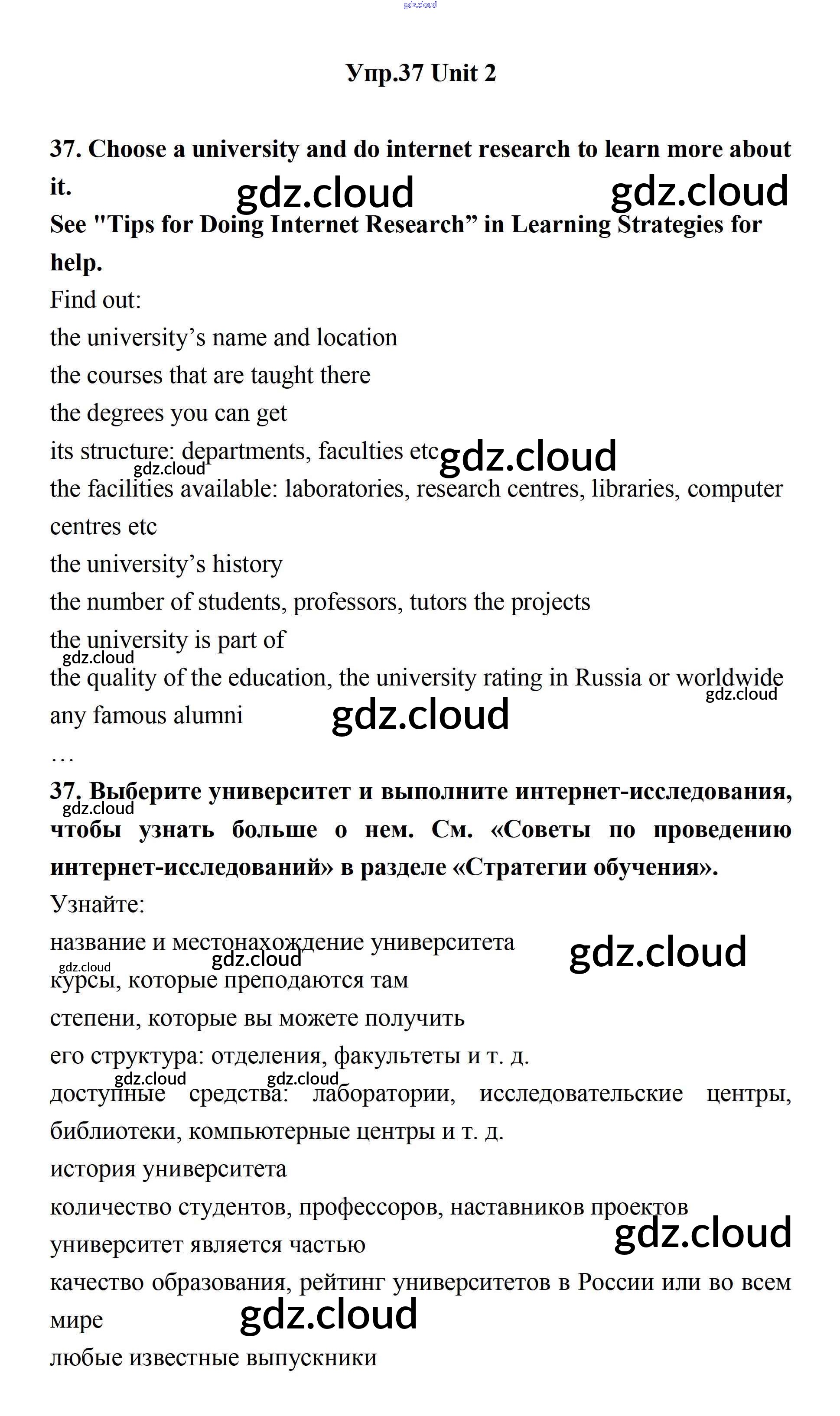 Ответ на задание 37 Учебник Английский язык за 11 (одиннадцатый) класс Биболетова, Бабушис, Снежко Enjoy English 2017