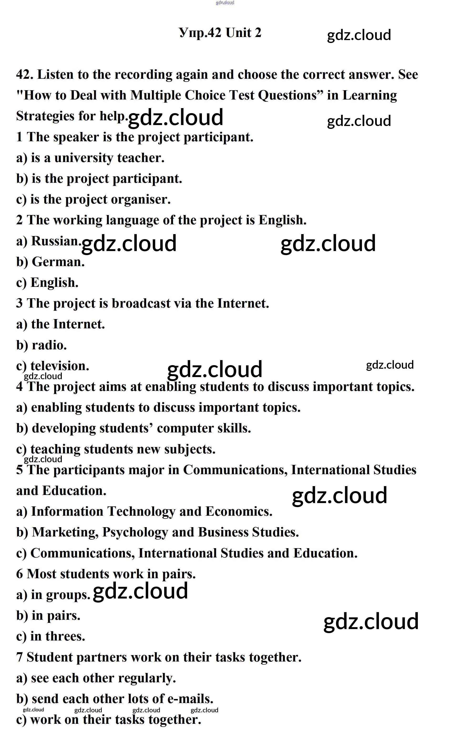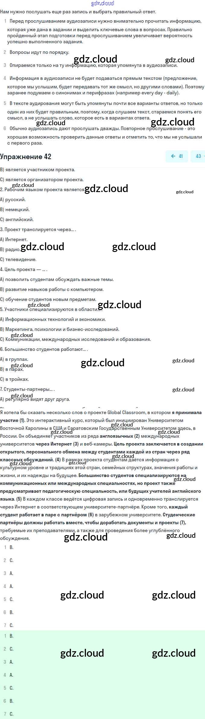 Ответ на задание 42 Учебник Английский язык за 11 (одиннадцатый) класс Биболетова, Бабушис, Снежко Enjoy English 2017