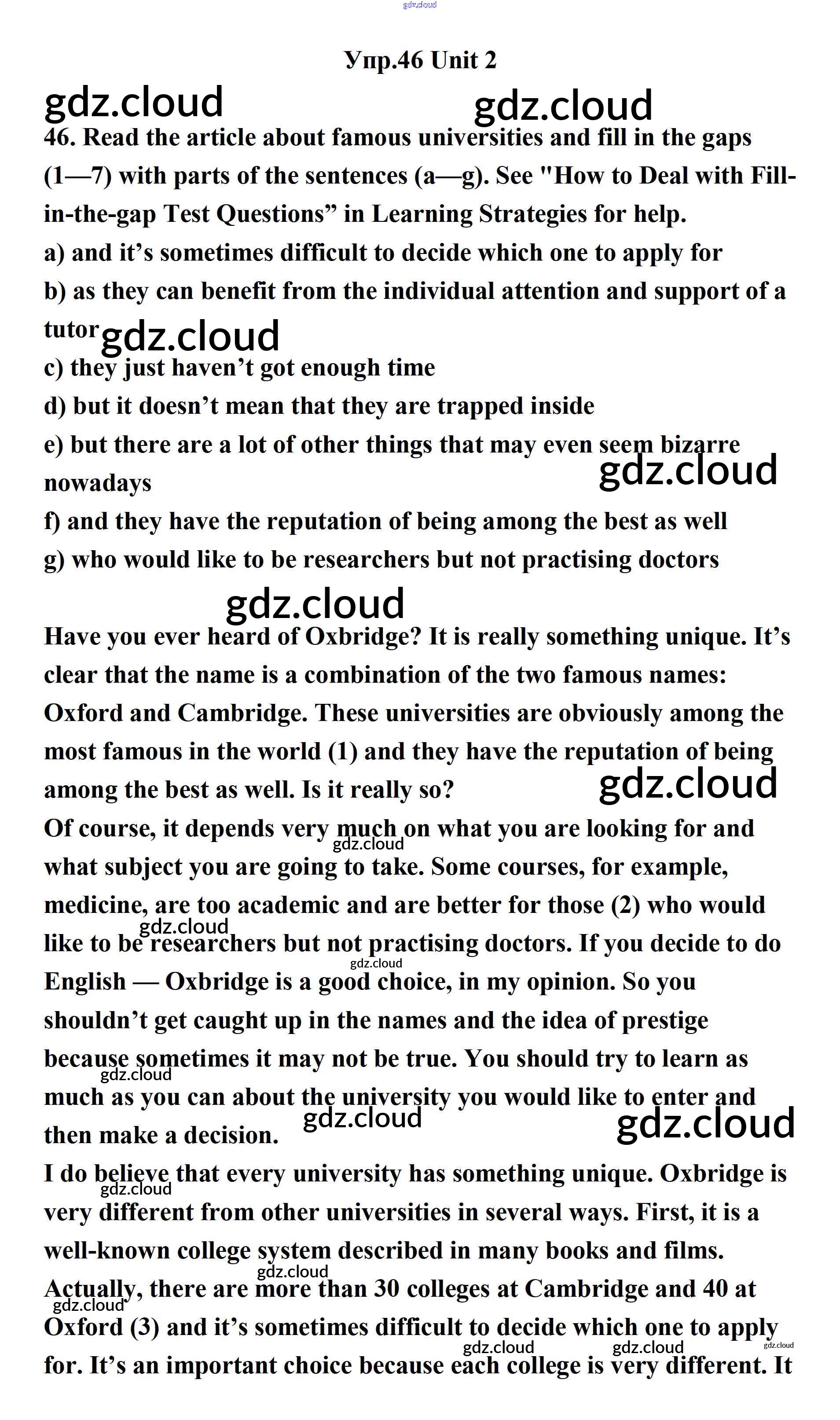 Ответ на задание 46 Учебник Английский язык за 11 (одиннадцатый) класс Биболетова, Бабушис, Снежко Enjoy English 2017