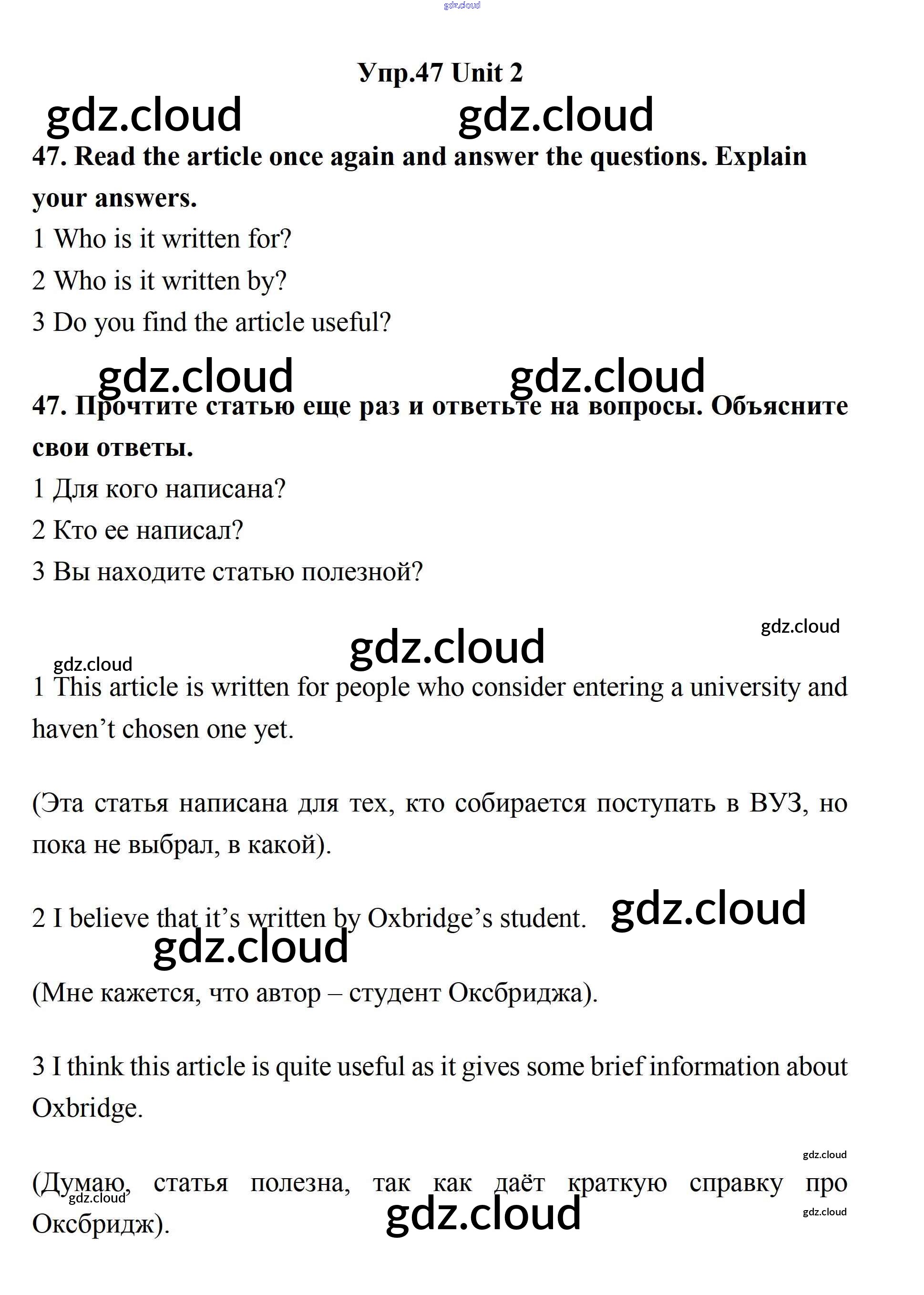 Ответ на задание 47 Учебник Английский язык за 11 (одиннадцатый) класс Биболетова, Бабушис, Снежко Enjoy English 2017