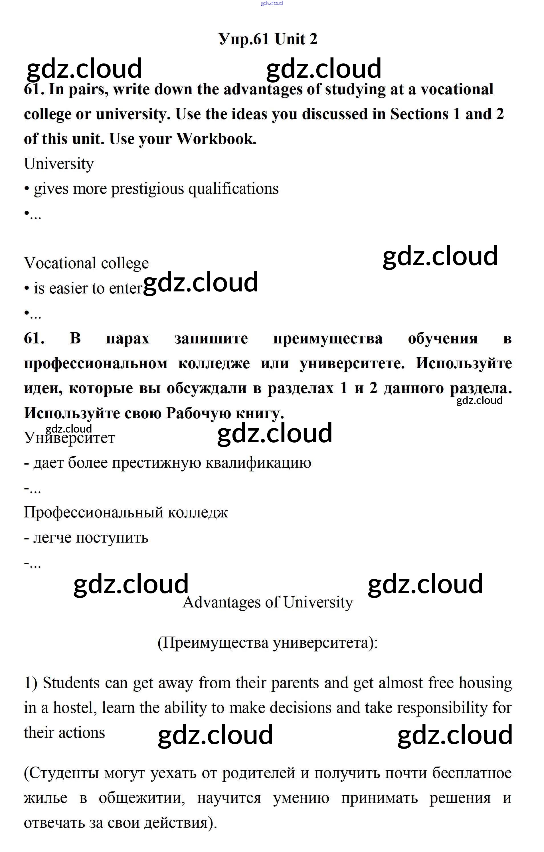 Ответ на задание 61 Учебник Английский язык за 11 (одиннадцатый) класс Биболетова, Бабушис, Снежко Enjoy English 2017