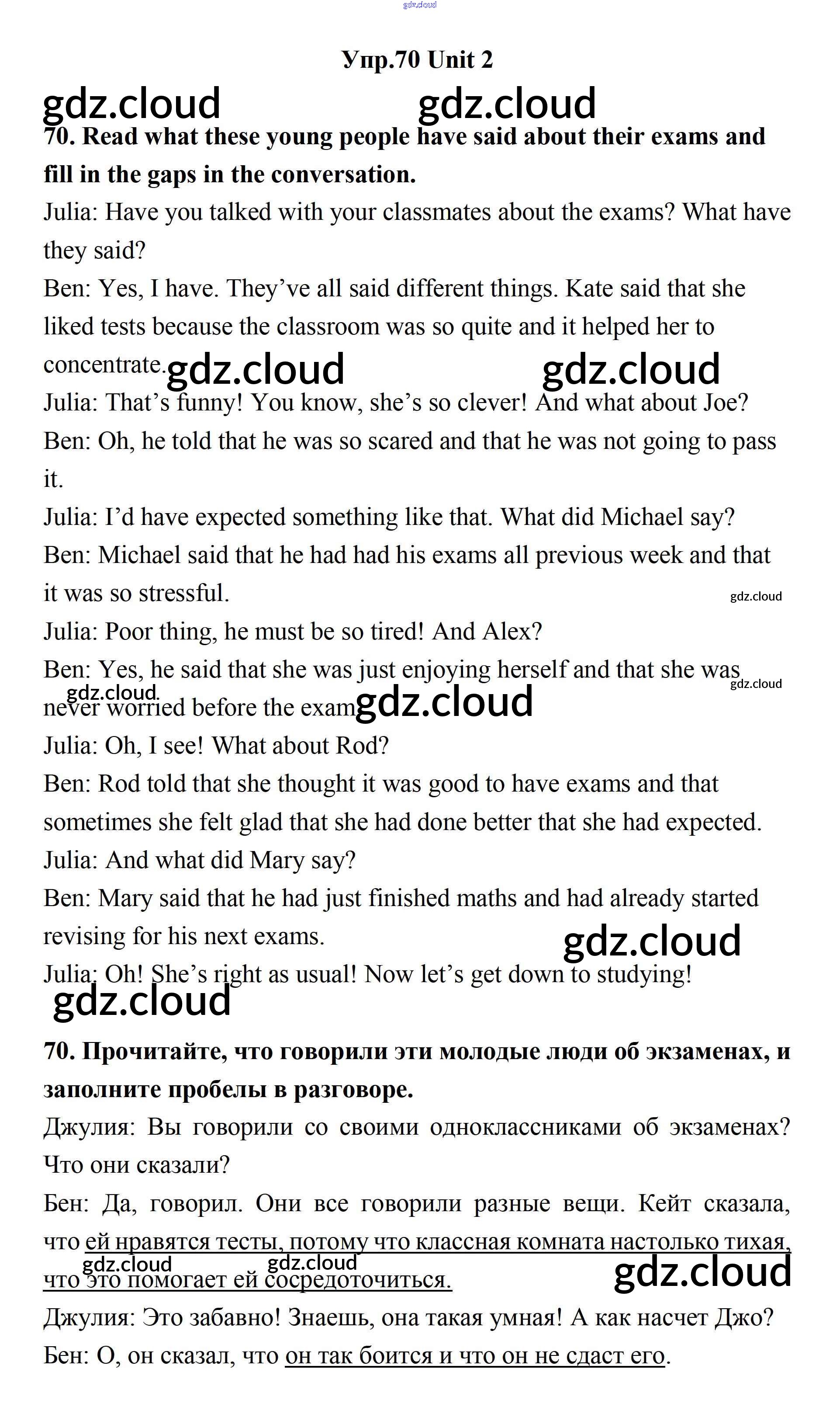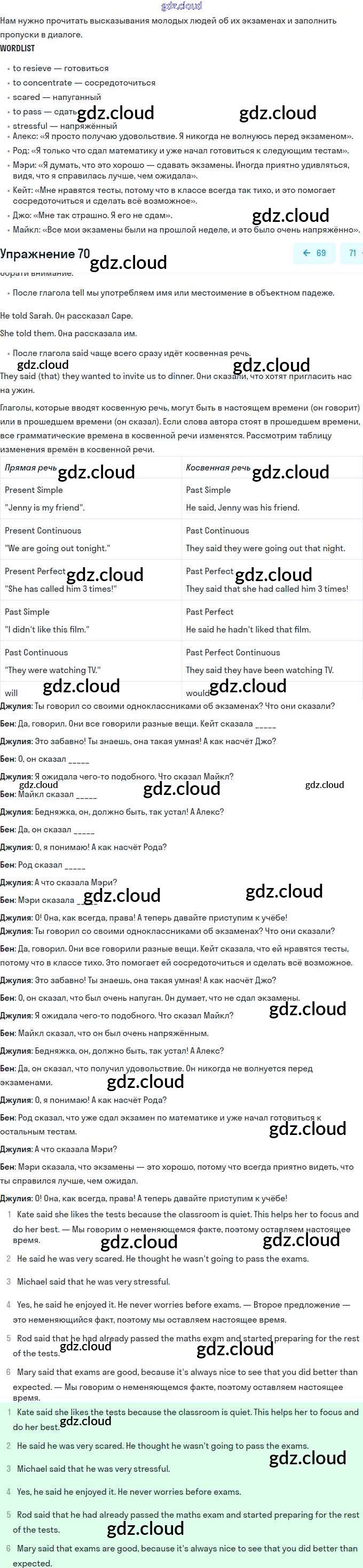 Ответ на задание 70 Учебник Английский язык за 11 (одиннадцатый) класс Биболетова, Бабушис, Снежко Enjoy English 2017