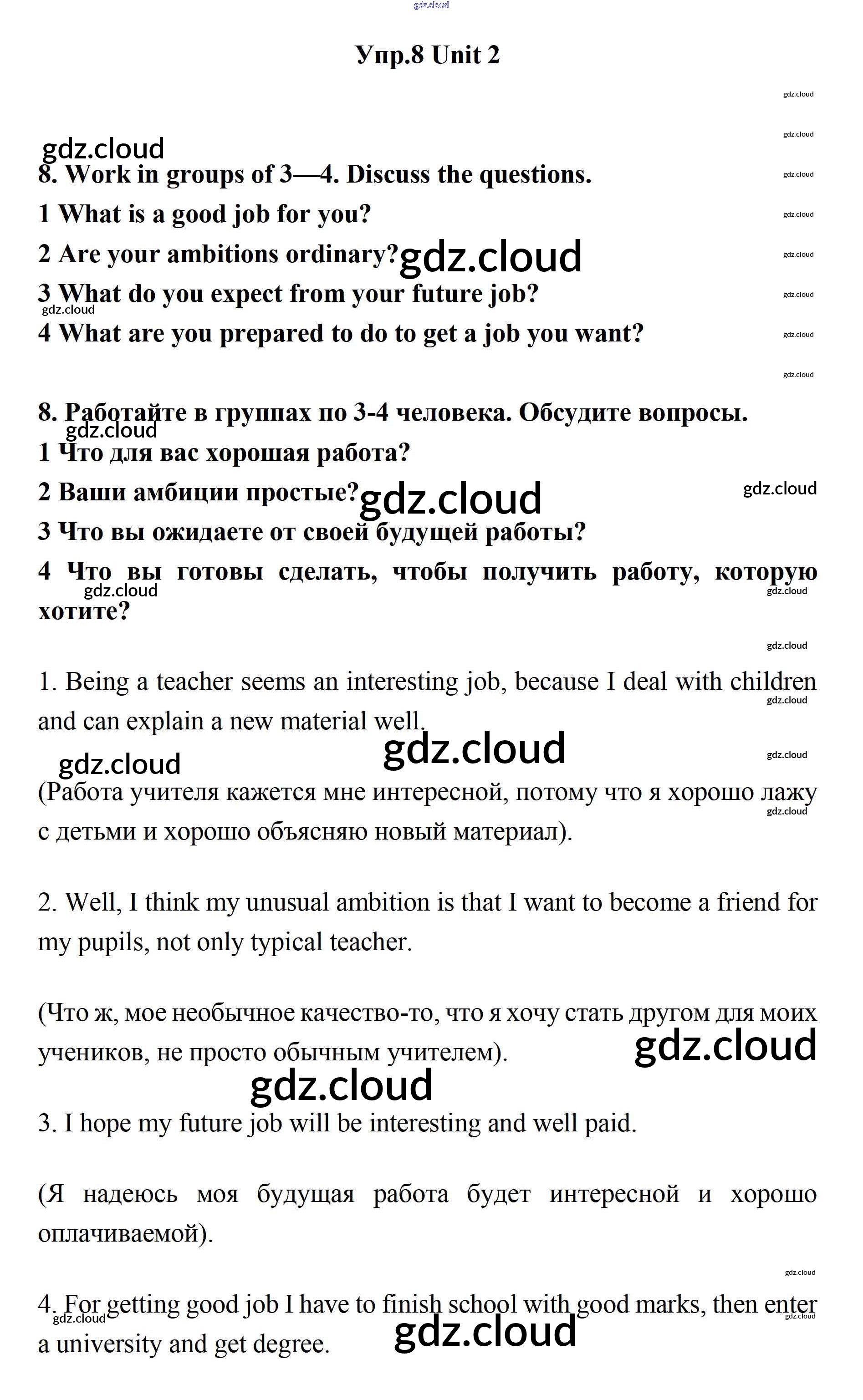 Ответ на задание 8 Учебник Английский язык за 11 (одиннадцатый) класс Биболетова, Бабушис, Снежко Enjoy English 2017