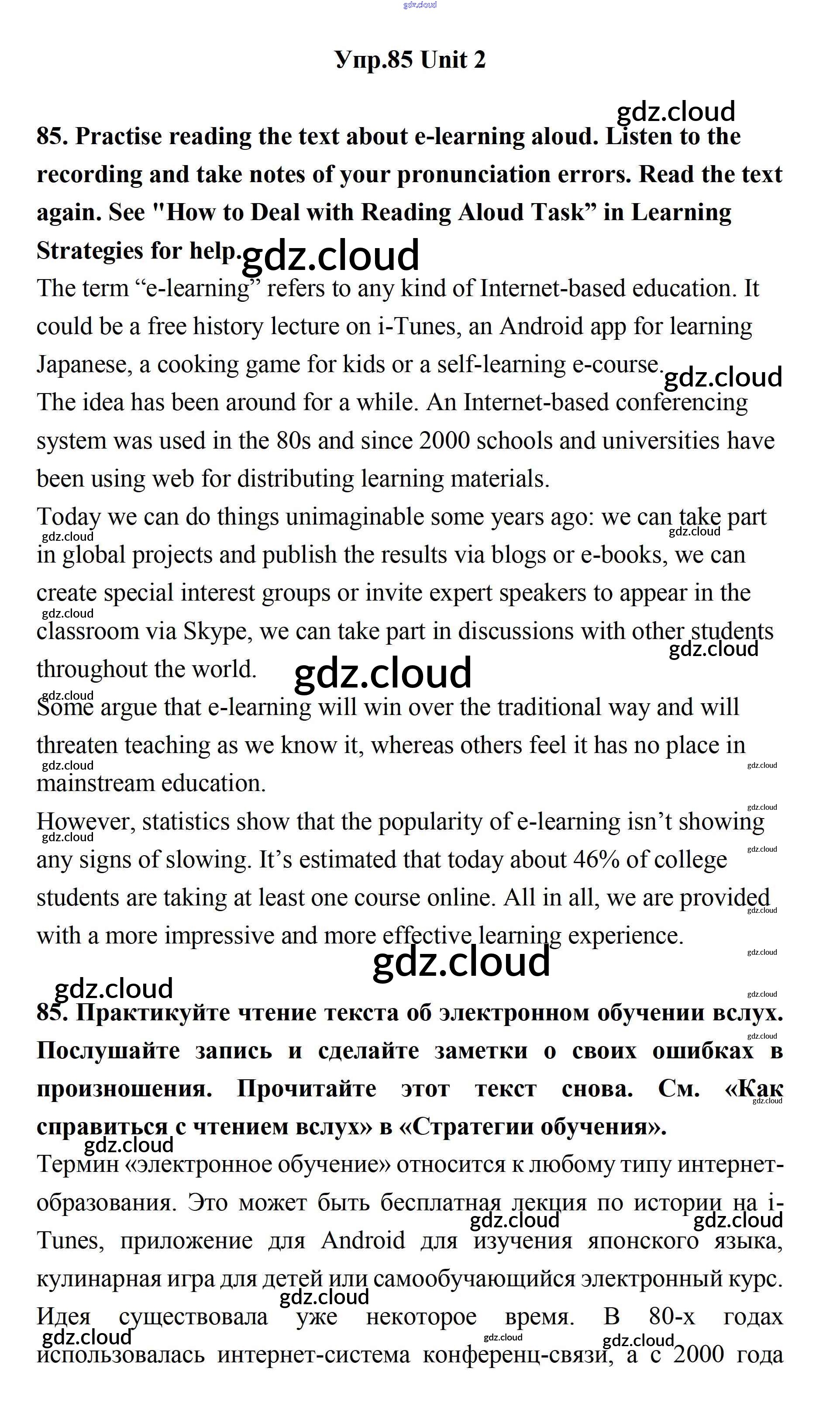 Ответ на задание 85 Учебник Английский язык за 11 (одиннадцатый) класс Биболетова, Бабушис, Снежко Enjoy English 2017