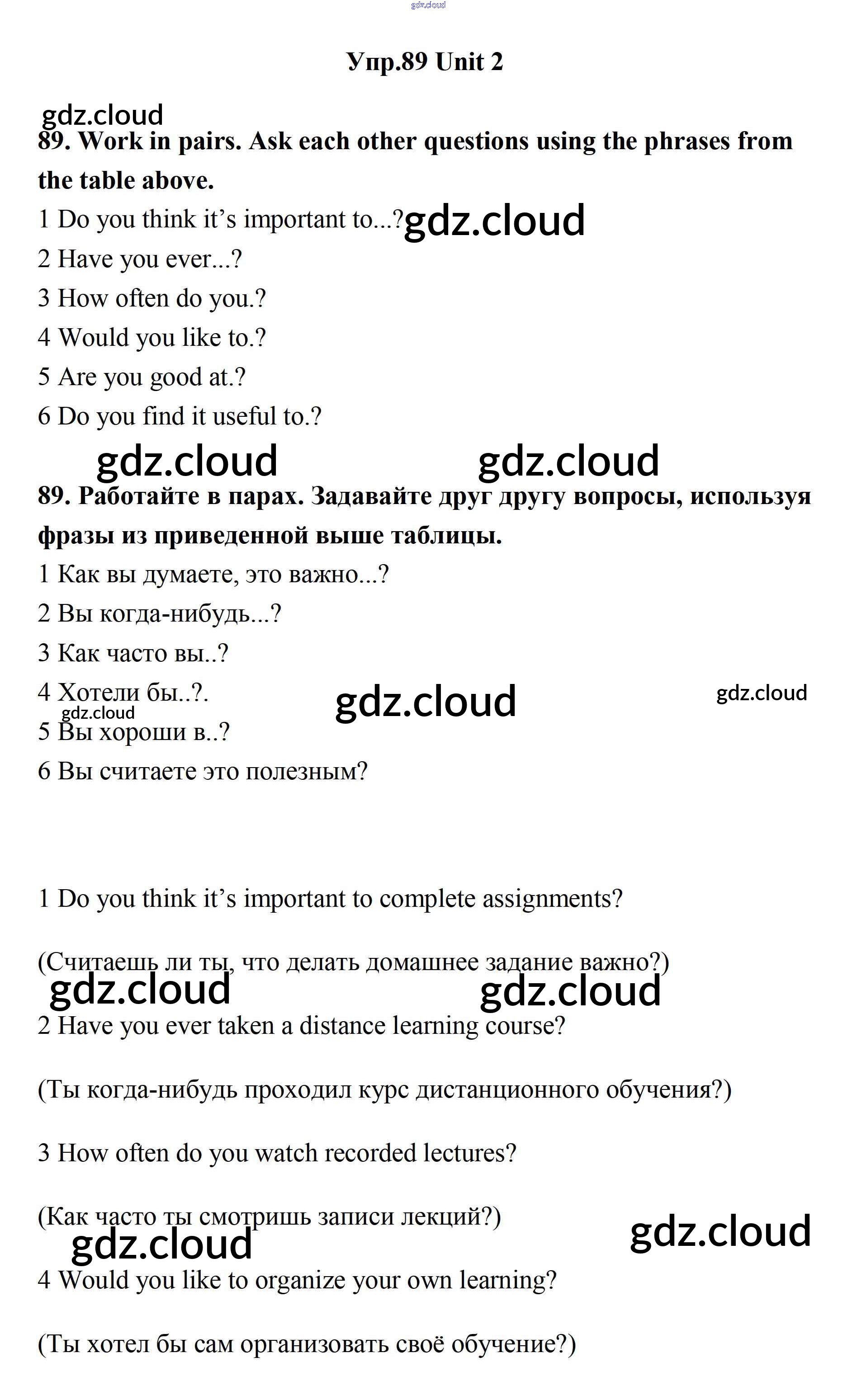 Ответ на задание 89 Учебник Английский язык за 11 (одиннадцатый) класс Биболетова, Бабушис, Снежко Enjoy English 2017