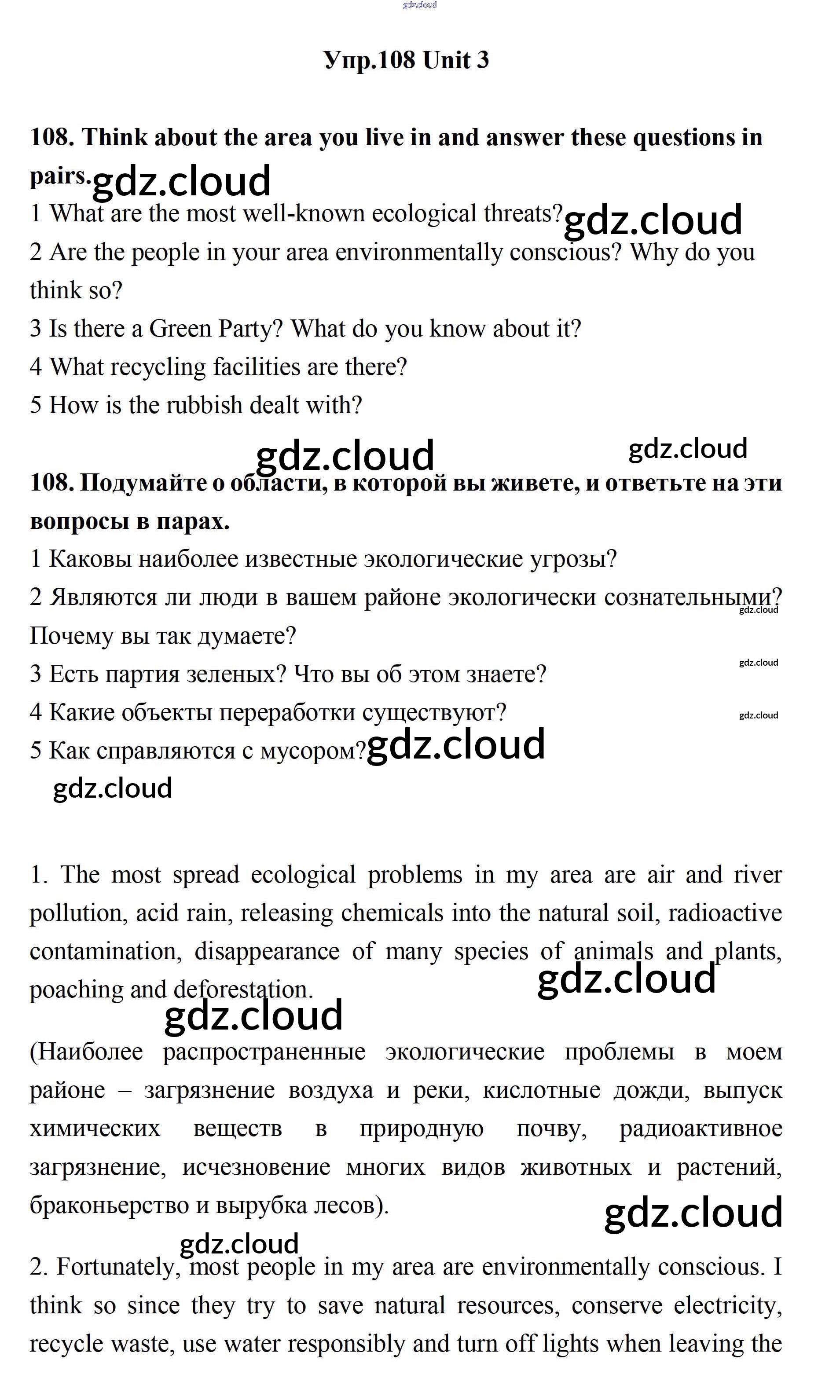 Ответ на задание 108 Учебник Английский язык за 11 (одиннадцатый) класс Биболетова, Бабушис, Снежко Enjoy English 2017