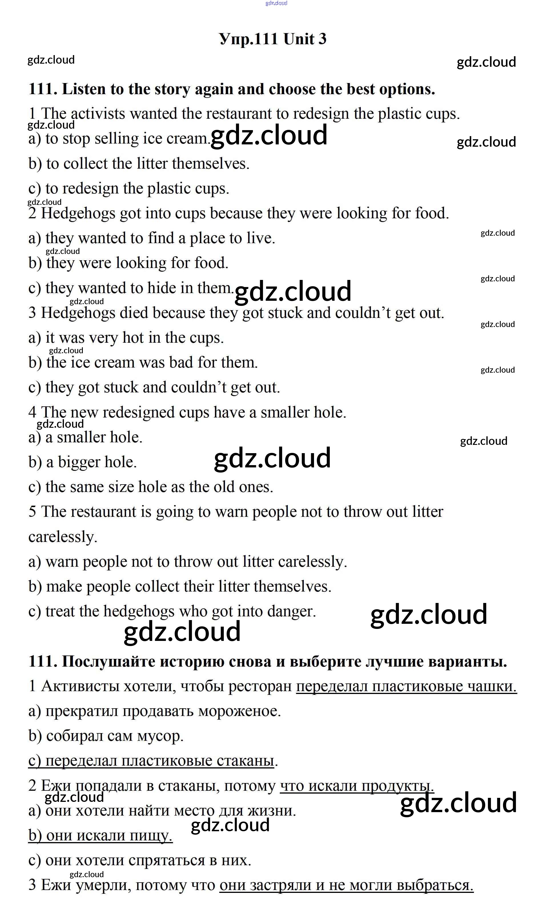 Ответ на задание 111 Учебник Английский язык за 11 (одиннадцатый) класс Биболетова, Бабушис, Снежко Enjoy English 2017
