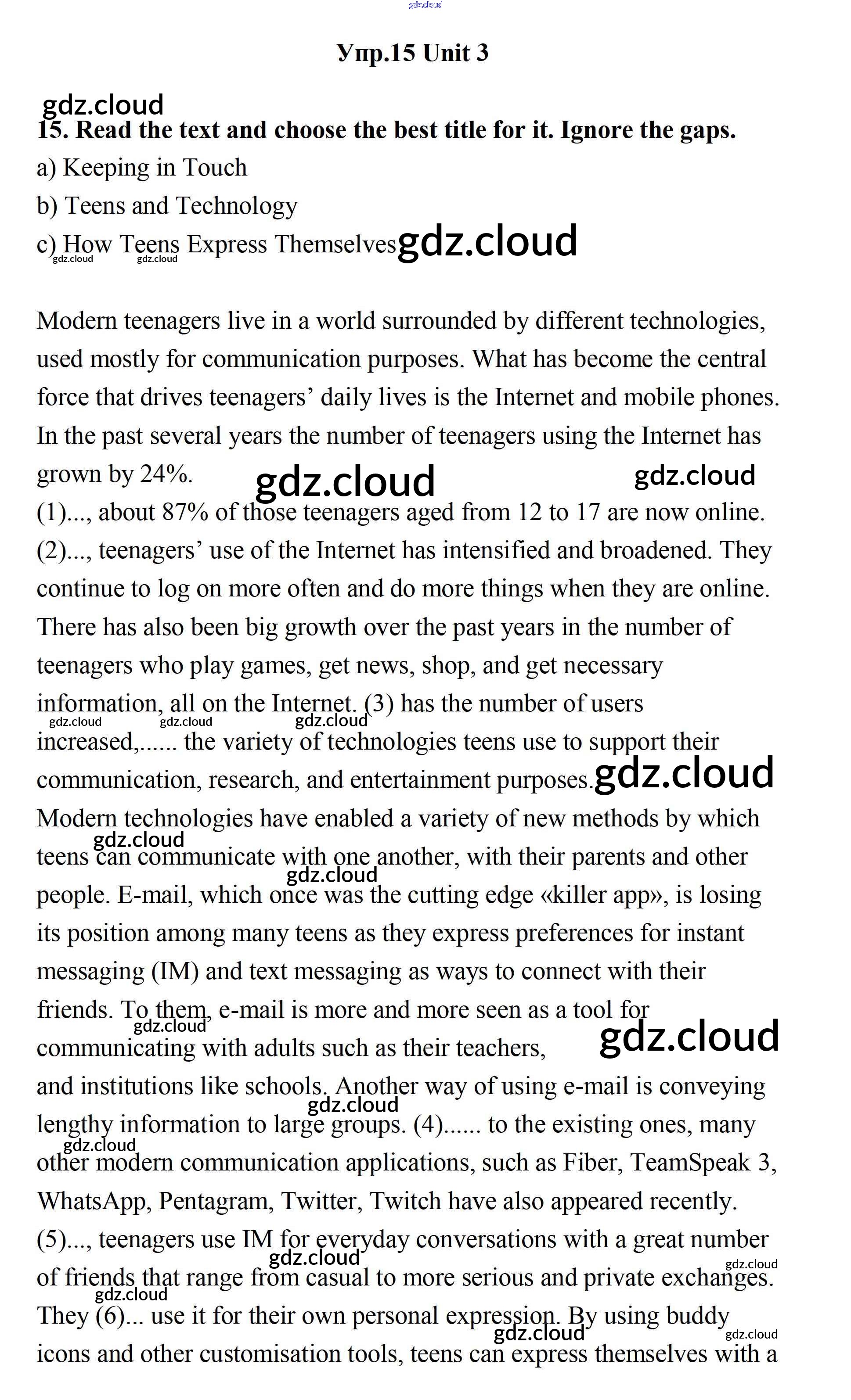 Ответ на задание 15 Учебник Английский язык за 11 (одиннадцатый) класс Биболетова, Бабушис, Снежко Enjoy English 2017