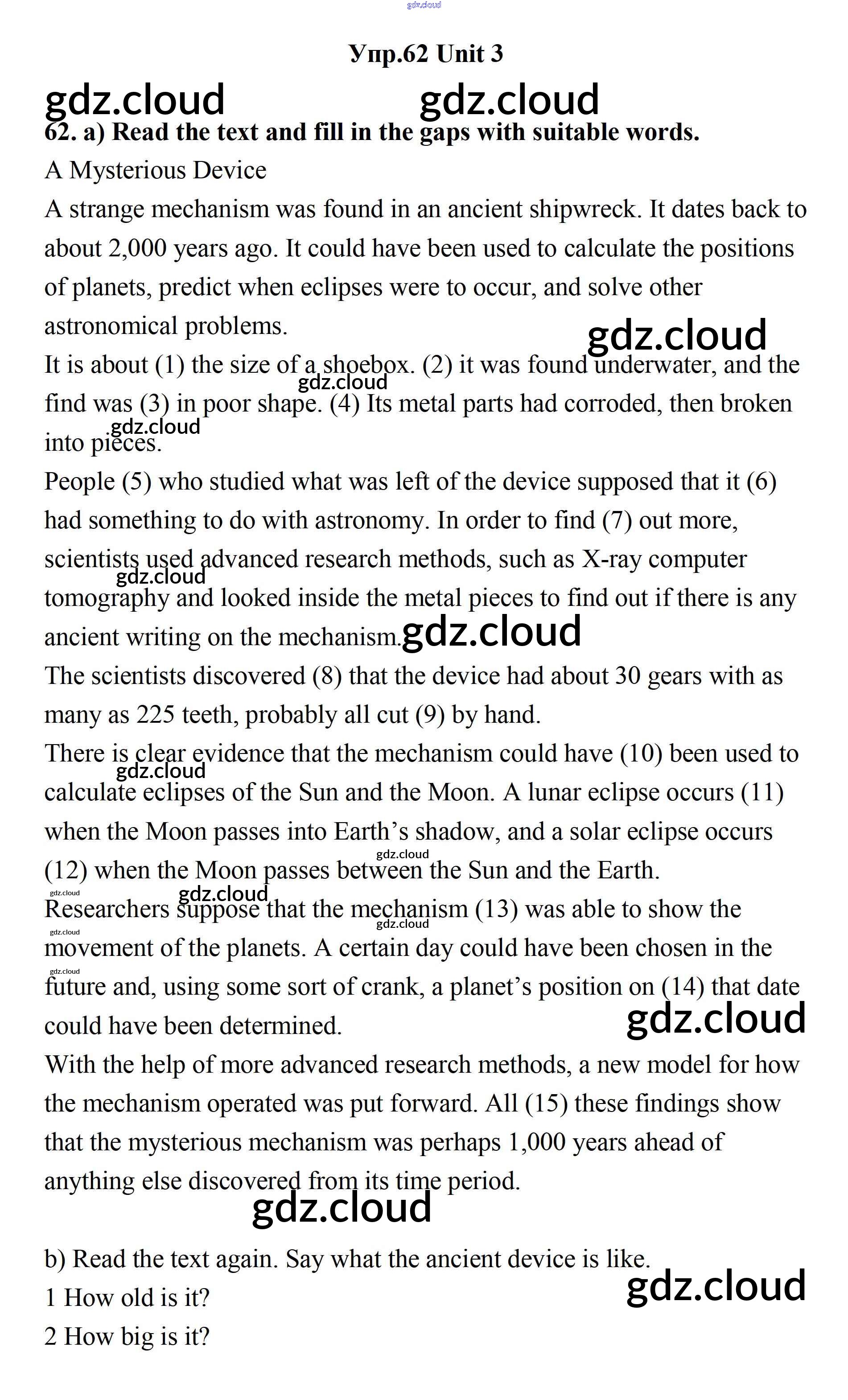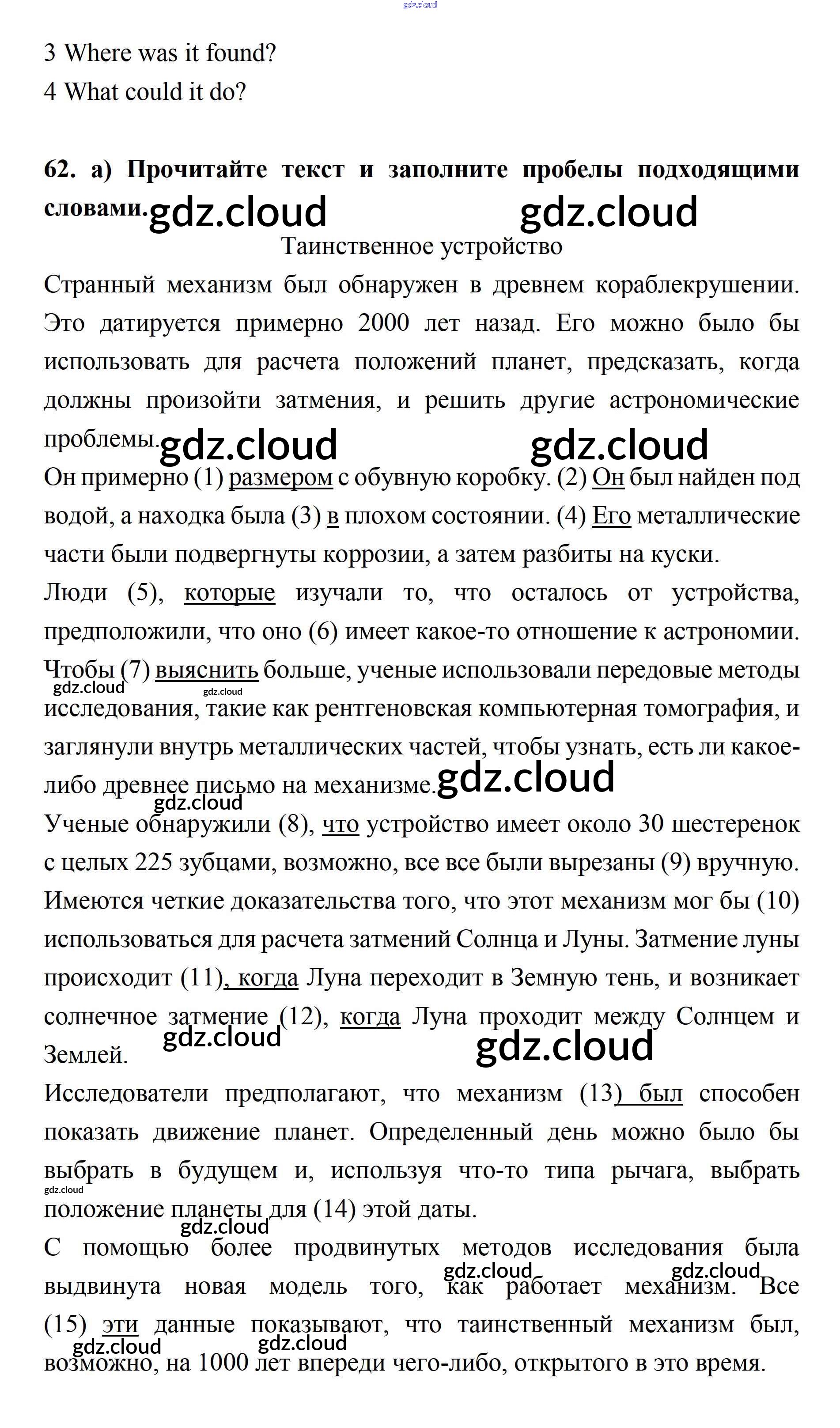Ответ на задание 62 Учебник Английский язык за 11 (одиннадцатый) класс Биболетова, Бабушис, Снежко Enjoy English 2017