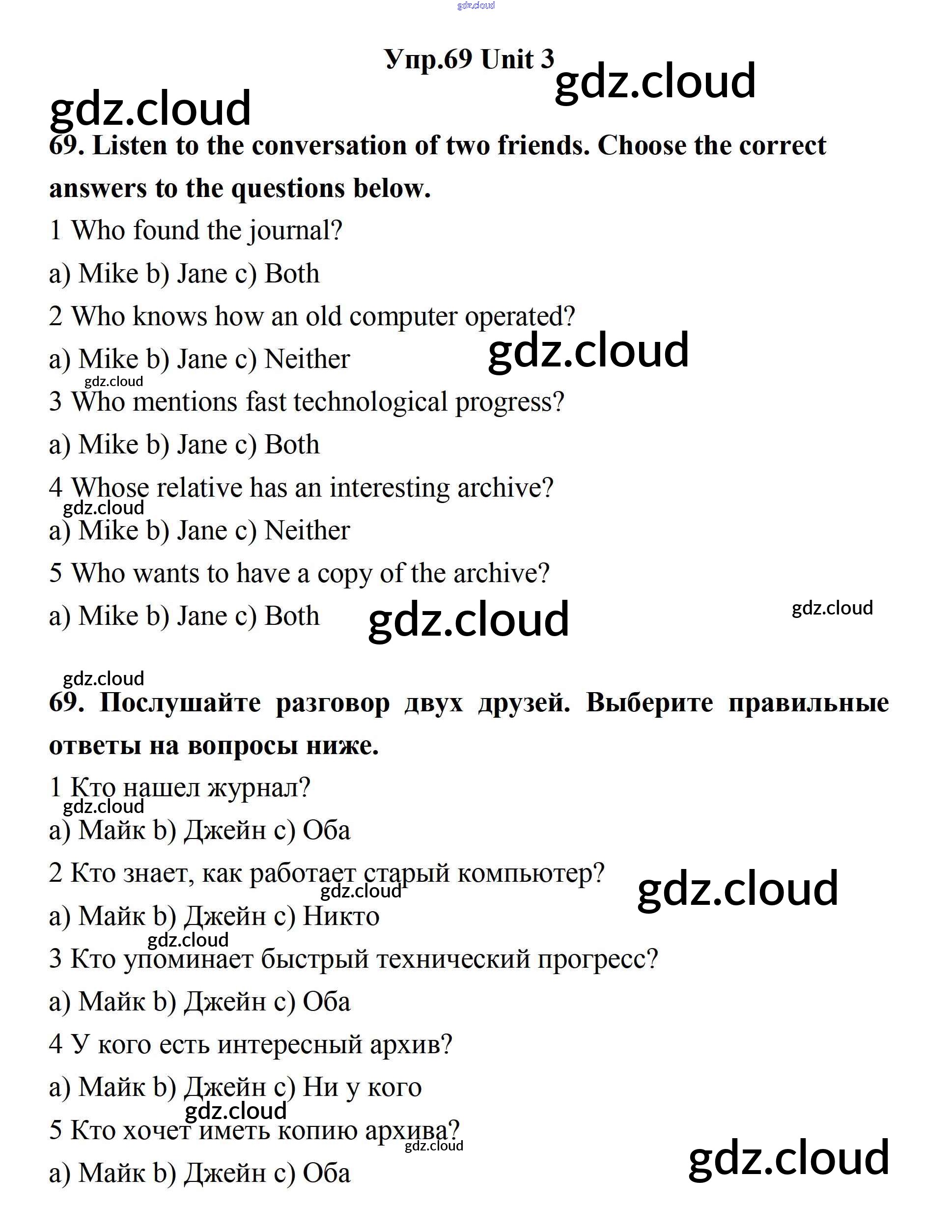 Ответ на задание 69 Учебник Английский язык за 11 (одиннадцатый) класс Биболетова, Бабушис, Снежко Enjoy English 2017