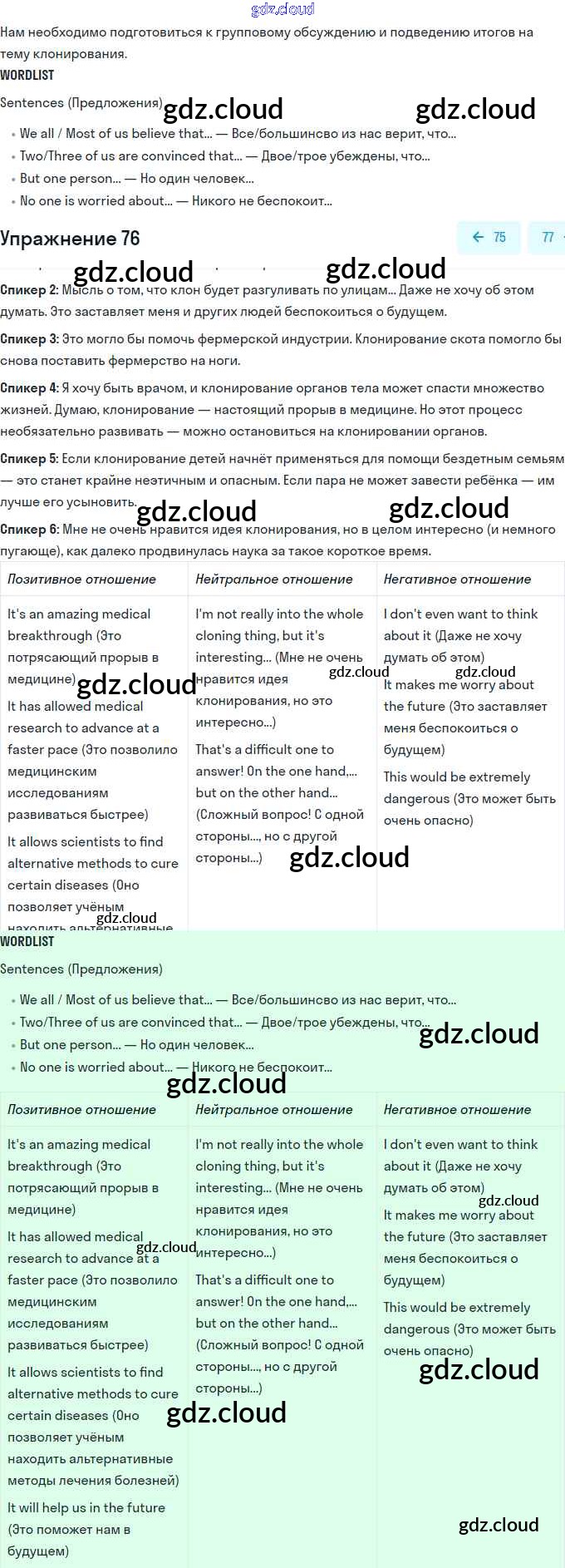 Ответ на задание 76 Учебник Английский язык за 11 (одиннадцатый) класс Биболетова, Бабушис, Снежко Enjoy English 2017