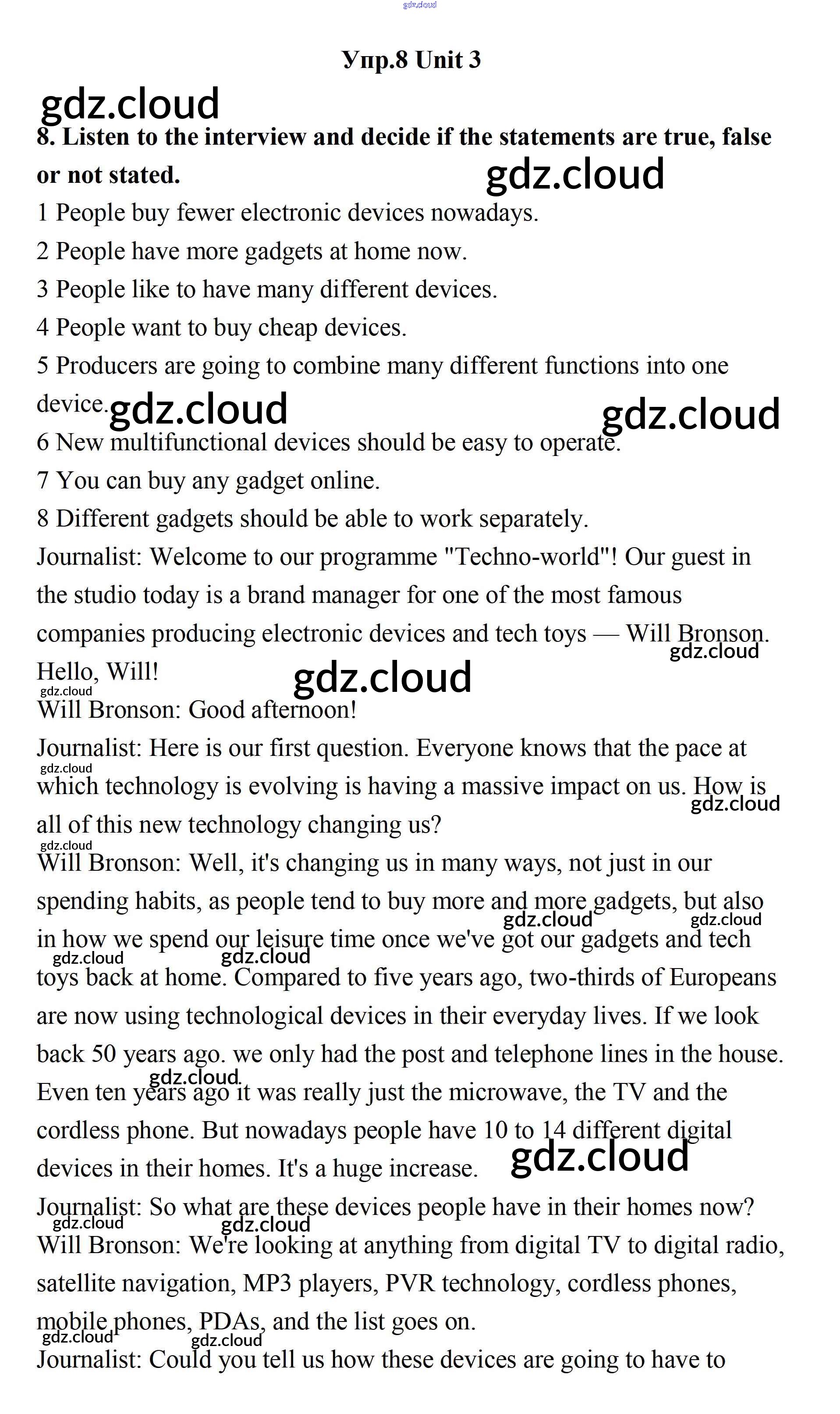 Ответы. Unit 3. New Technological World по Английскому языку 11 класс Учебник Биболетова Enjoy English Дрофа