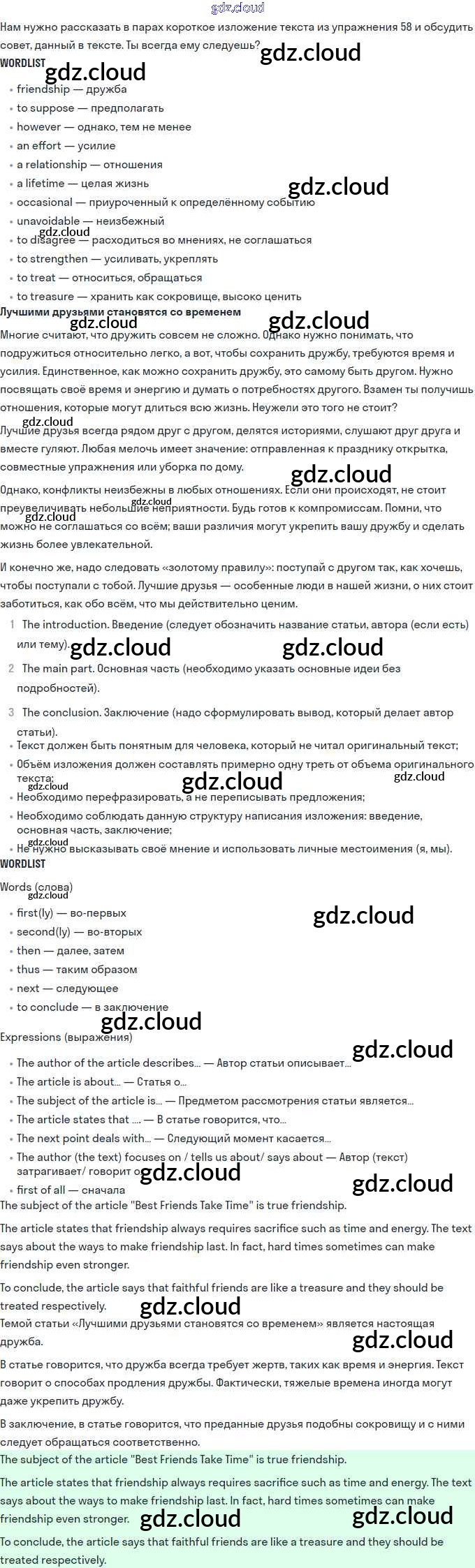Ответ на задание 59 Учебник Английский язык за 11 (одиннадцатый) класс Биболетова, Бабушис, Снежко Enjoy English 2017