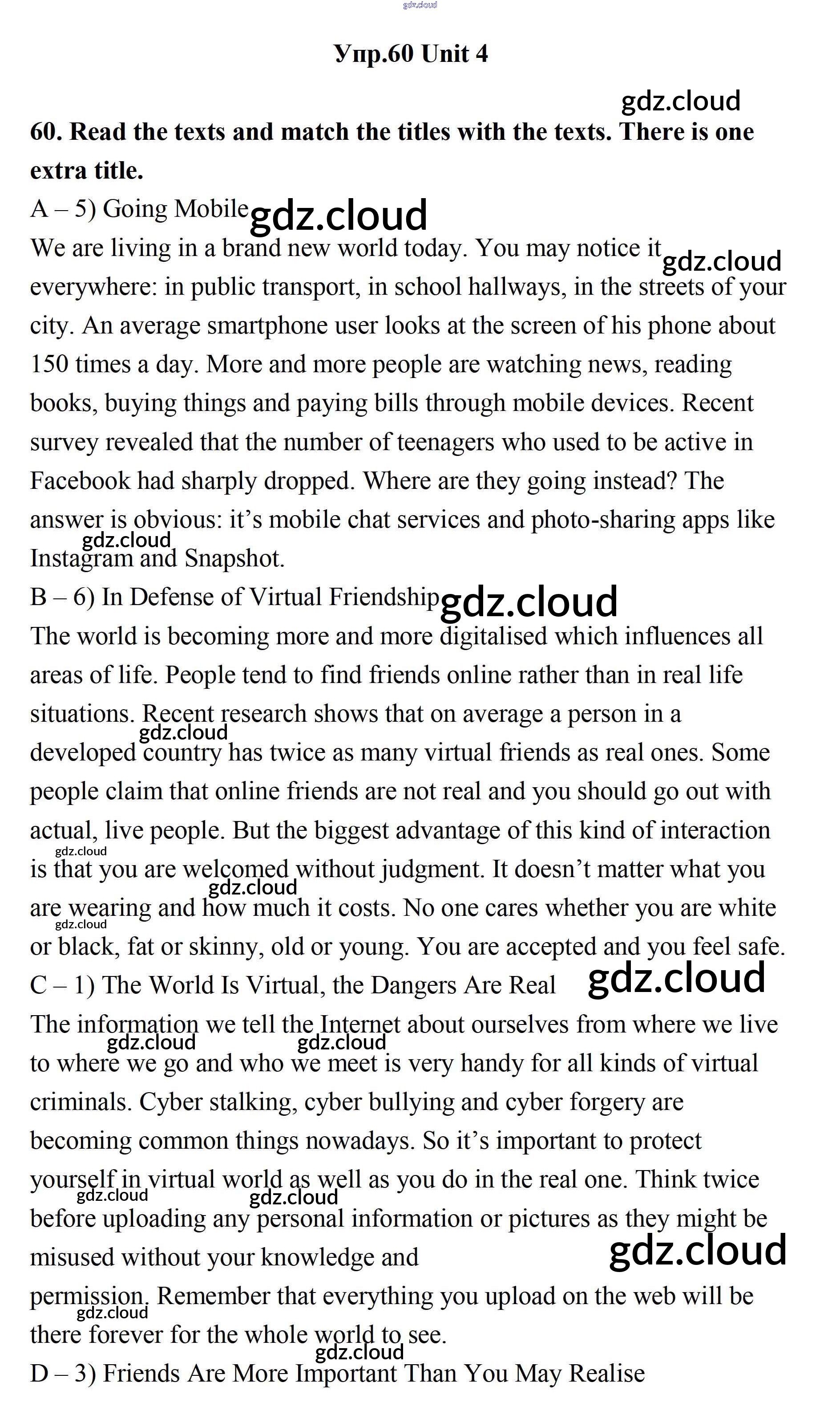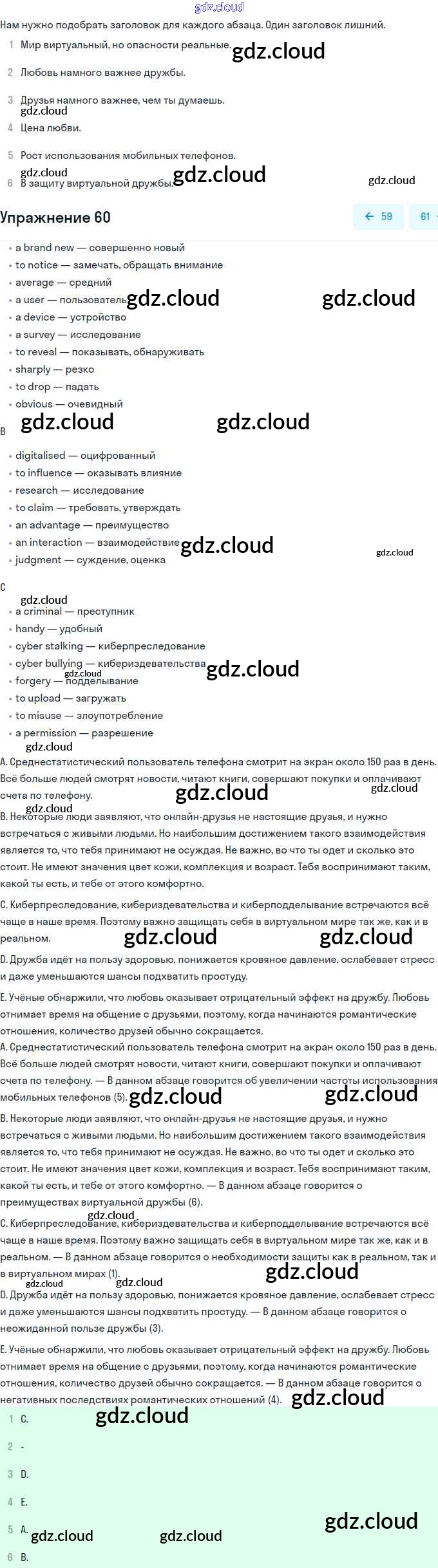 Ответ на задание 60 Учебник Английский язык за 11 (одиннадцатый) класс Биболетова, Бабушис, Снежко Enjoy English 2017
