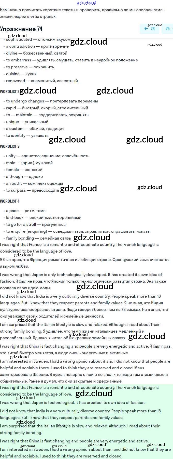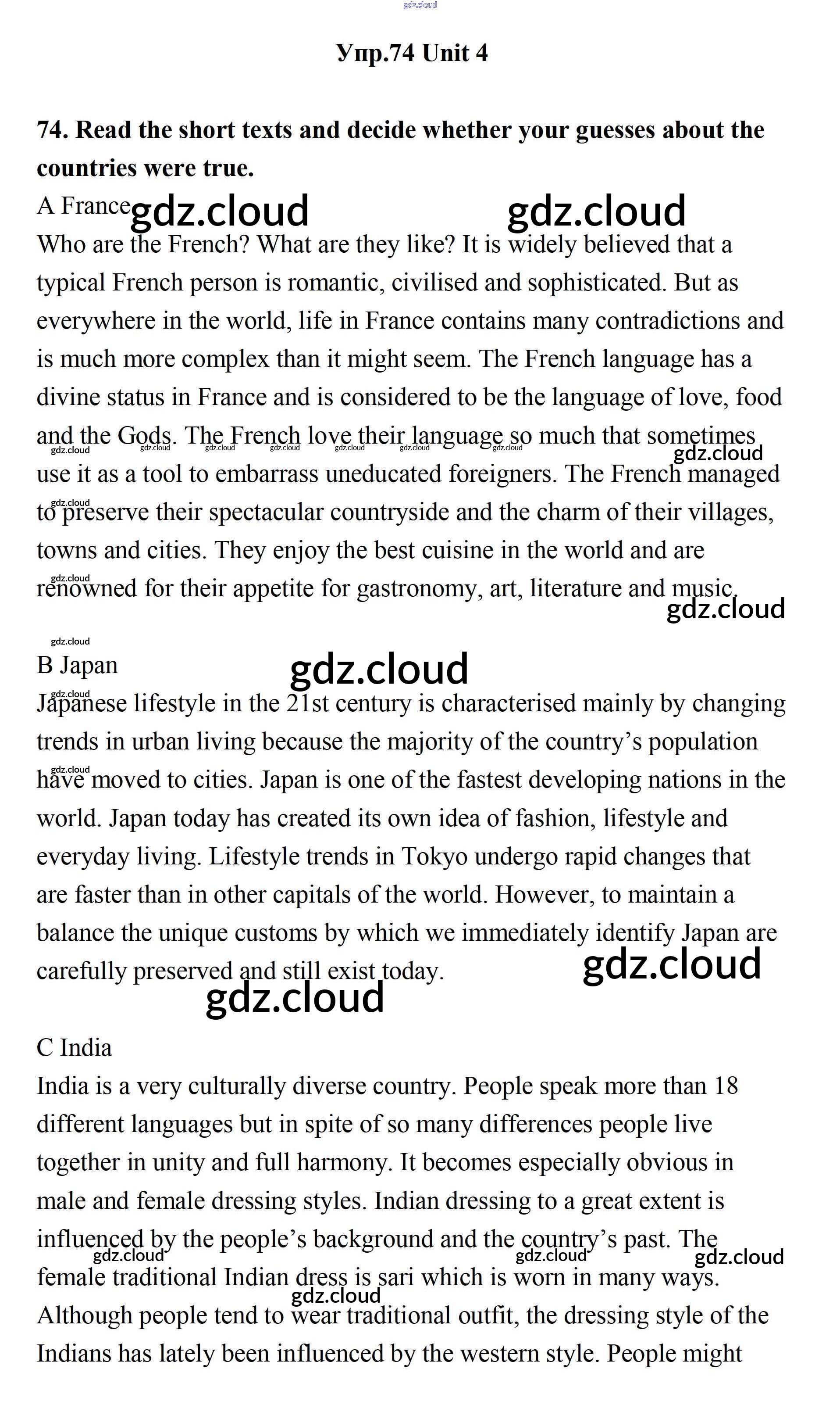 Ответ на задание 74 Учебник Английский язык за 11 (одиннадцатый) класс Биболетова, Бабушис, Снежко Enjoy English 2017