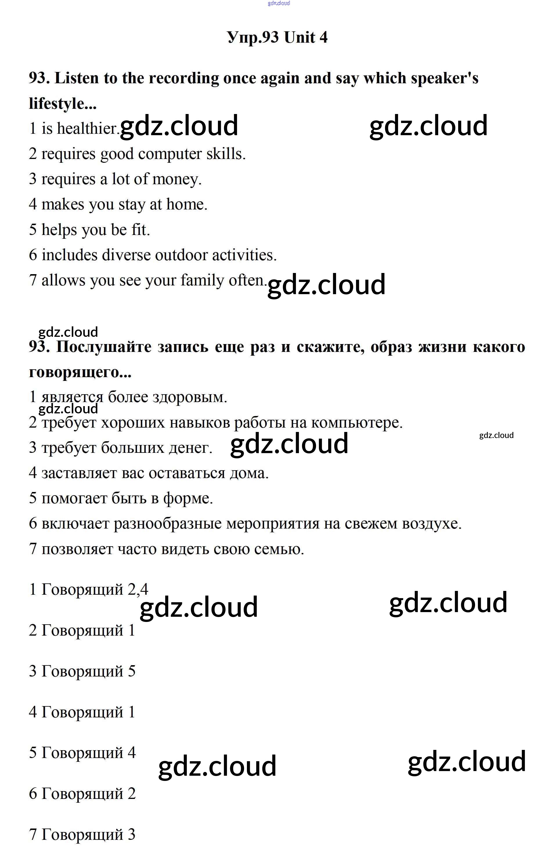 Ответ на задание 93 Учебник Английский язык за 11 (одиннадцатый) класс Биболетова, Бабушис, Снежко Enjoy English 2017