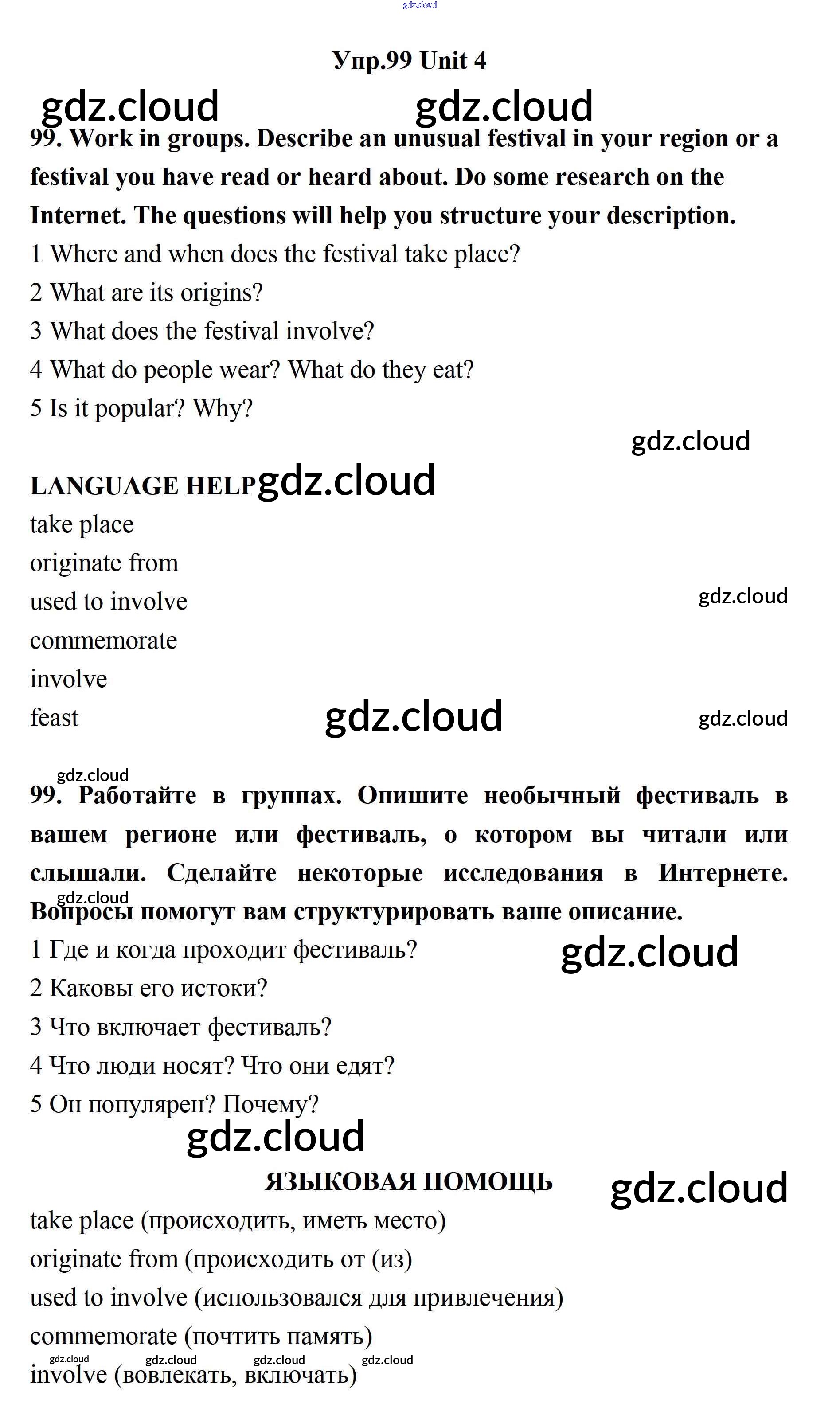 Ответ на задание 99 Учебник Английский язык за 11 (одиннадцатый) класс Биболетова, Бабушис, Снежко Enjoy English 2017