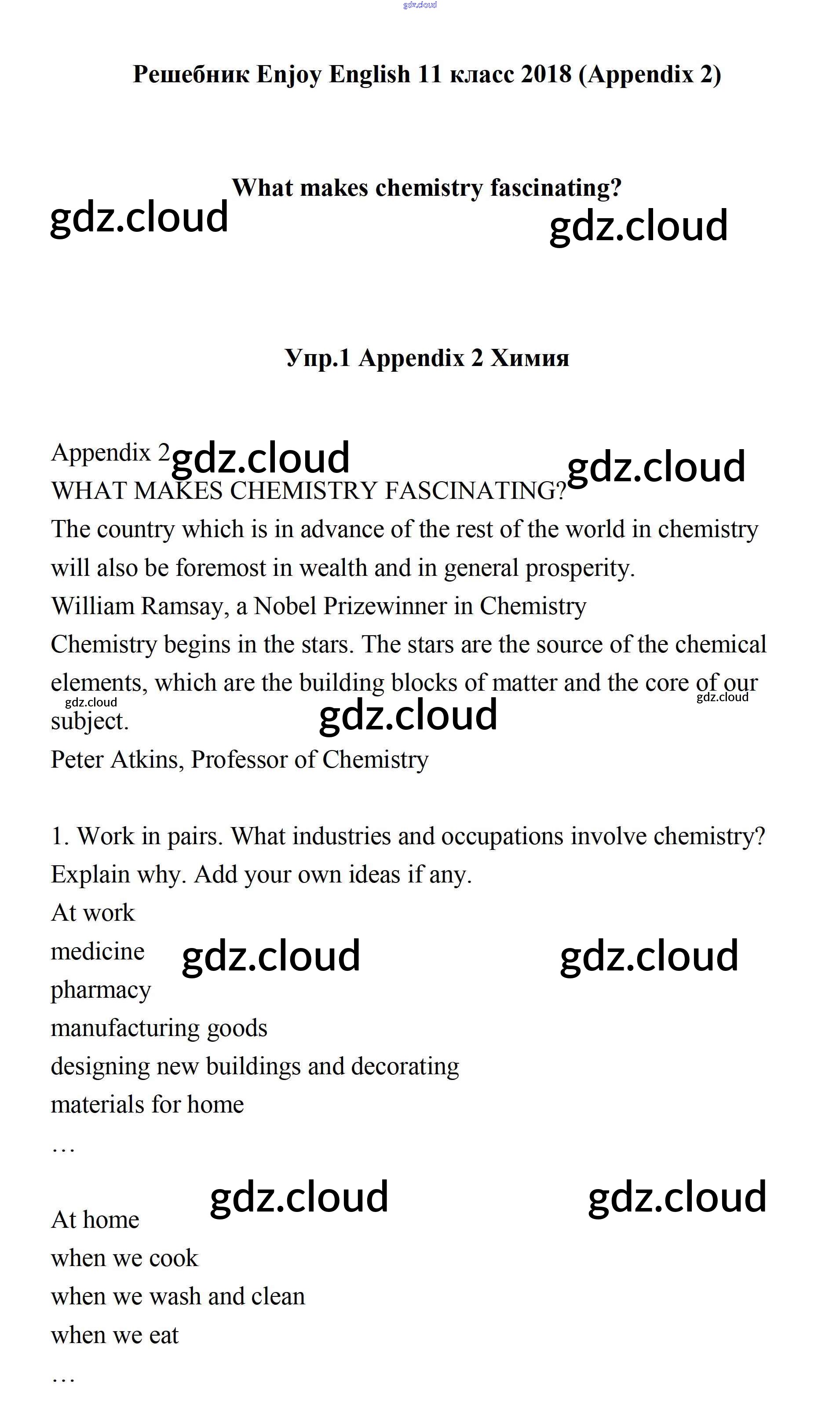What makes chemistry fascinating? Ответы. Appendix 2 по Английскому языку 11 класс Учебник Биболетова Enjoy English Дрофа
