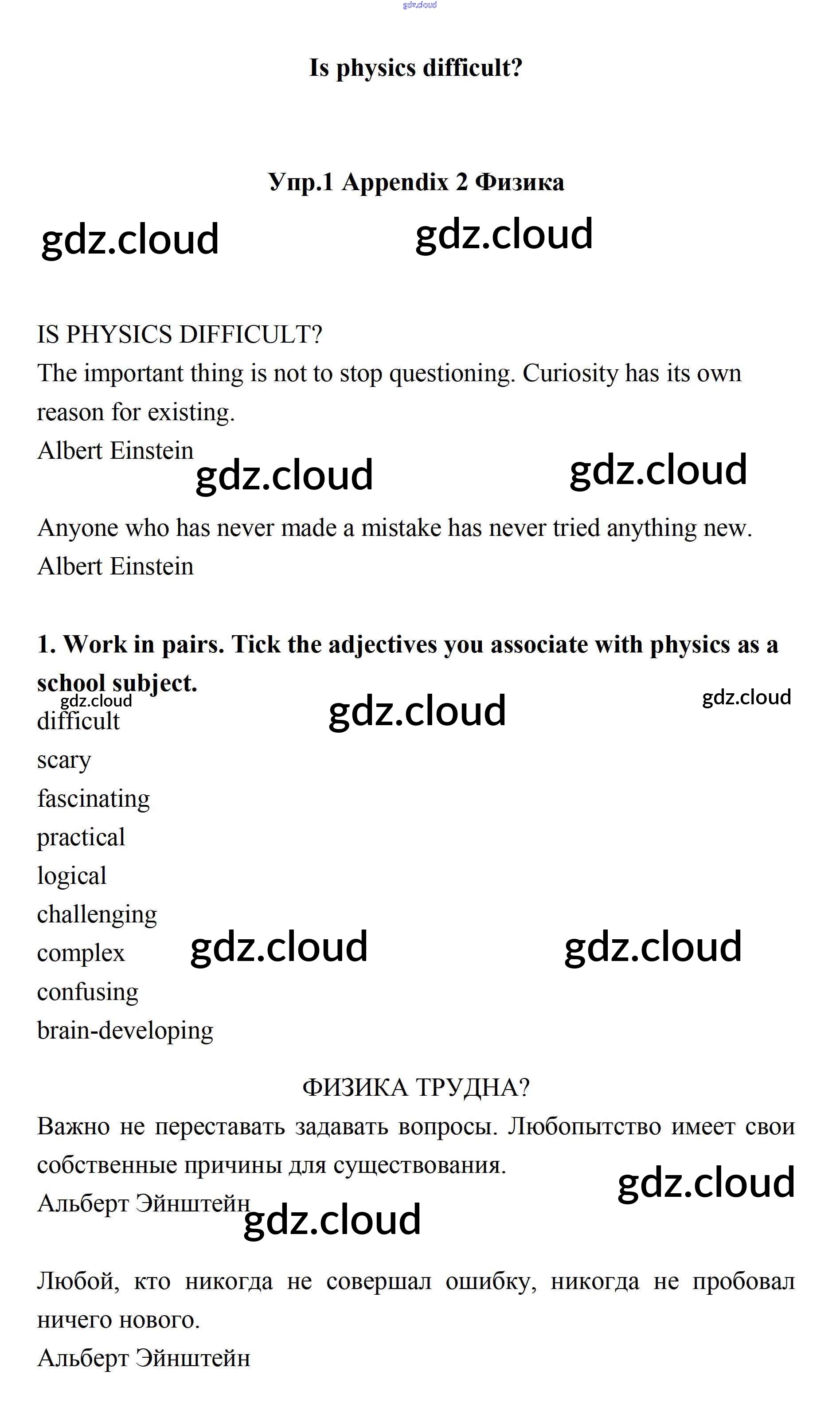 Is physics difficult? Ответы. Appendix 2 по Английскому языку 11 класс Учебник Биболетова Enjoy English Дрофа