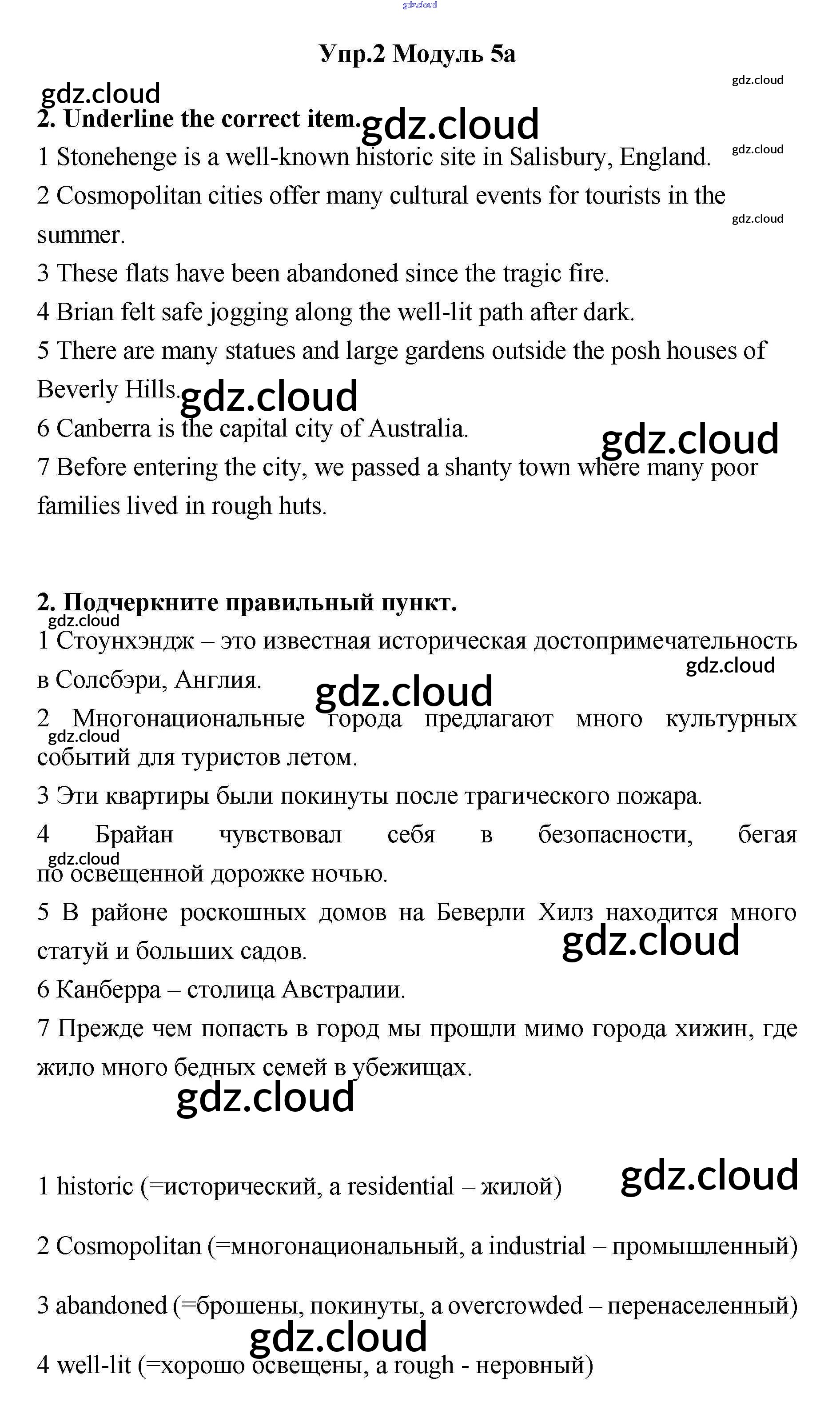 Ответ на задание 2 Рабочая тетрадь Английский язык за 11 (одиннадцатый) класс Эванс, Афанасьева, Дули, Михеева, Оби Spotlight 2015