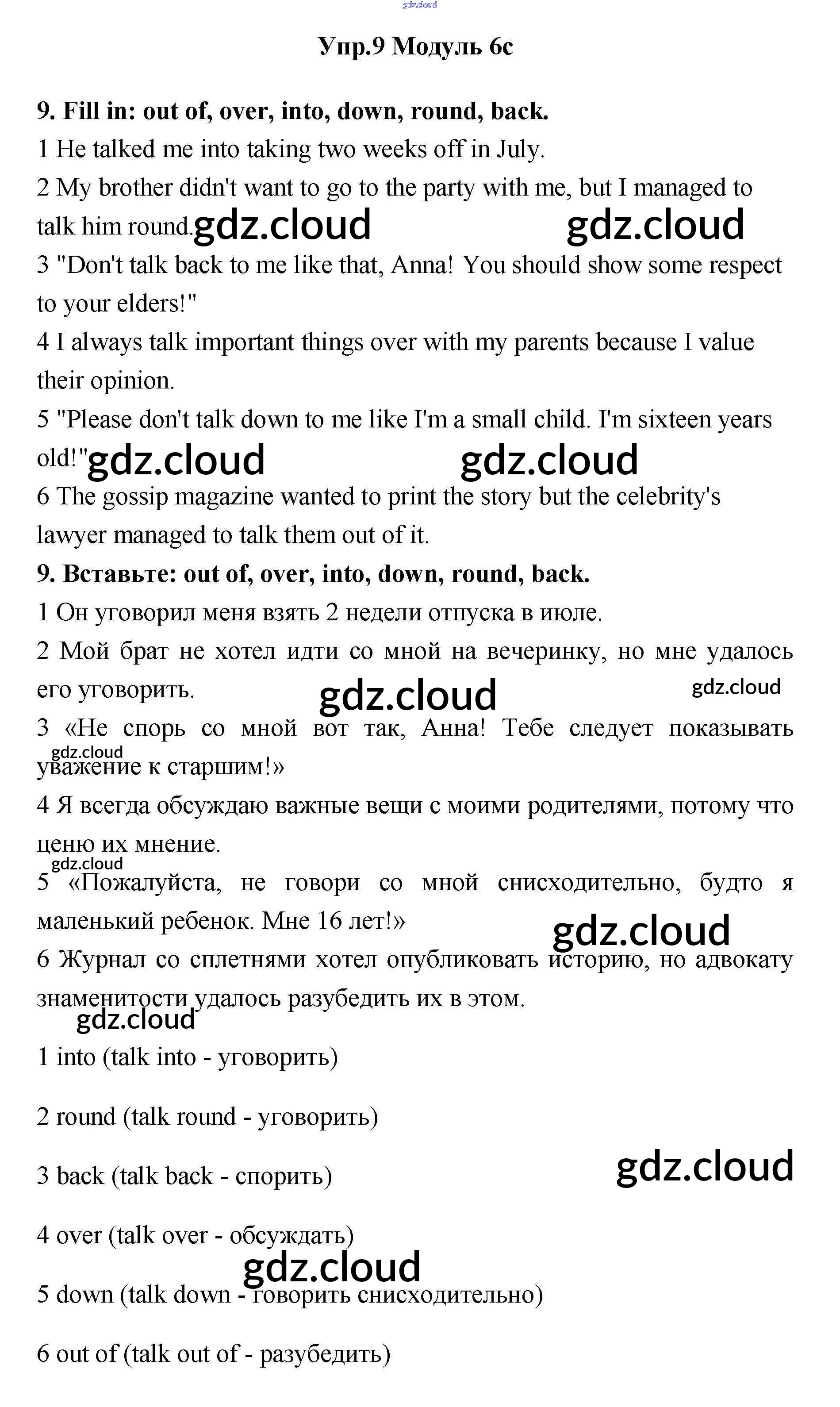 Ответ на задание 9 Рабочая тетрадь Английский язык за 11 (одиннадцатый) класс Эванс, Афанасьева, Дули, Михеева, Оби Spotlight 2015