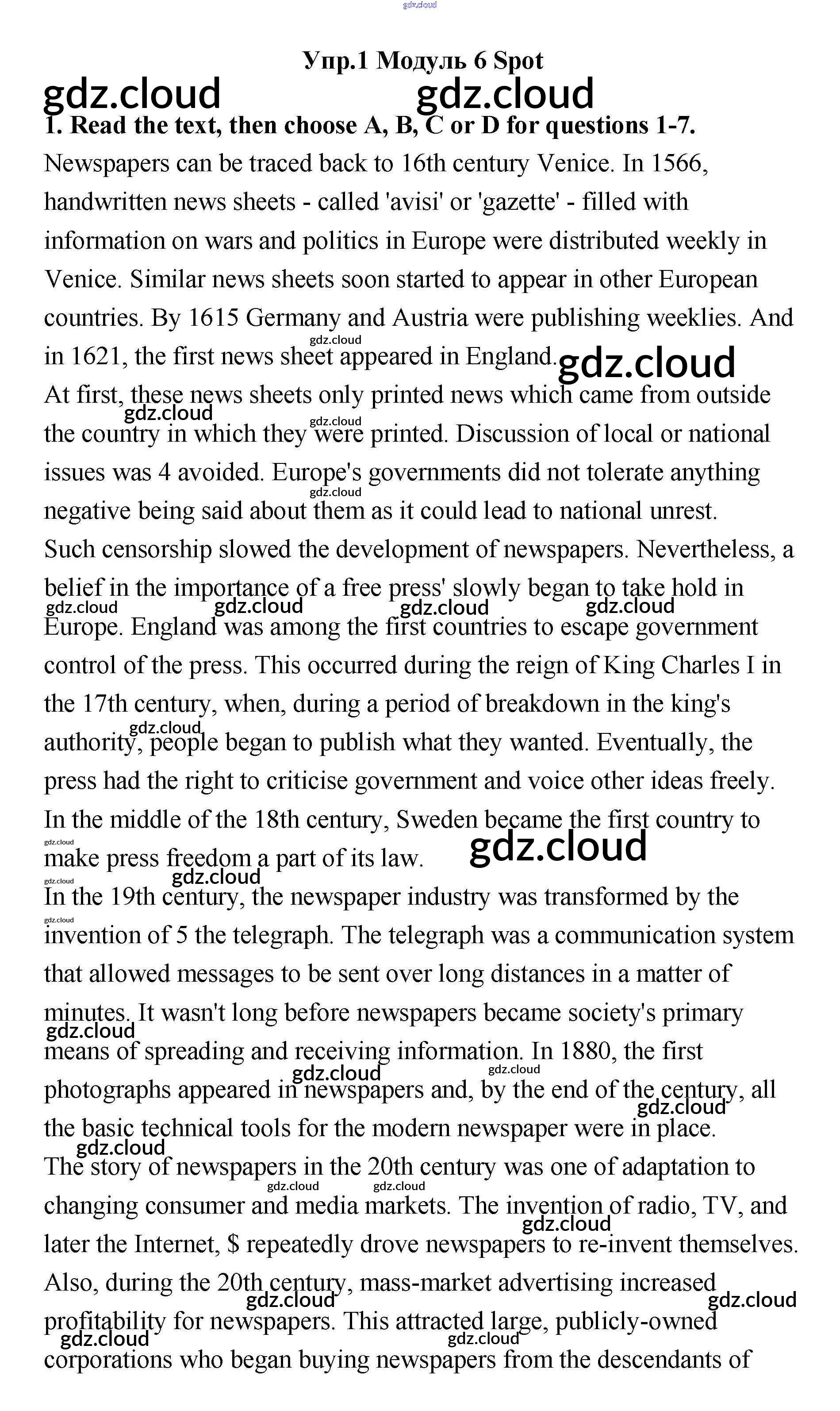 Ответ на задание 1 Рабочая тетрадь Английский язык за 11 (одиннадцатый) класс Эванс, Афанасьева, Дули, Михеева, Оби Spotlight 2015