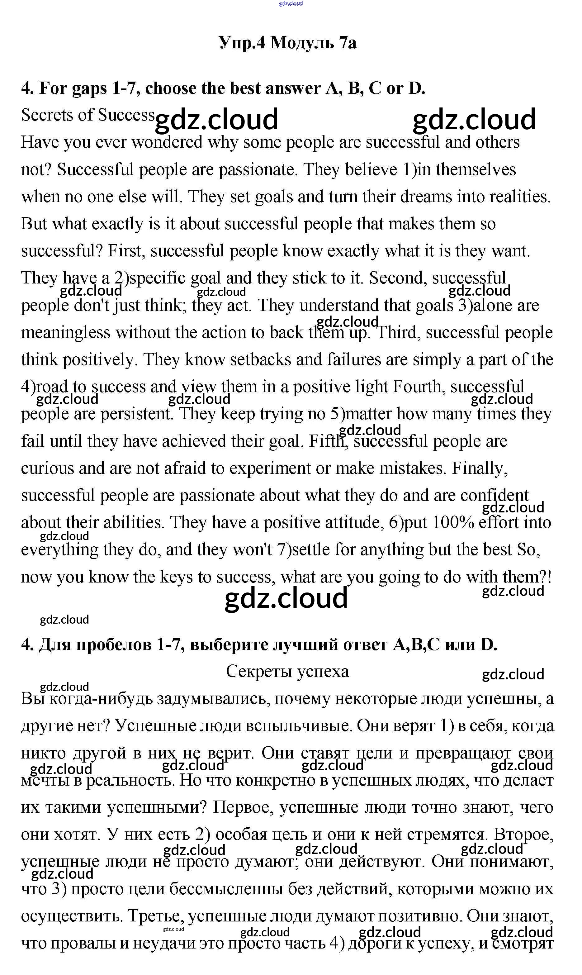 Ответ на задание 4 Рабочая тетрадь Английский язык за 11 (одиннадцатый) класс Эванс, Афанасьева, Дули, Михеева, Оби Spotlight 2015