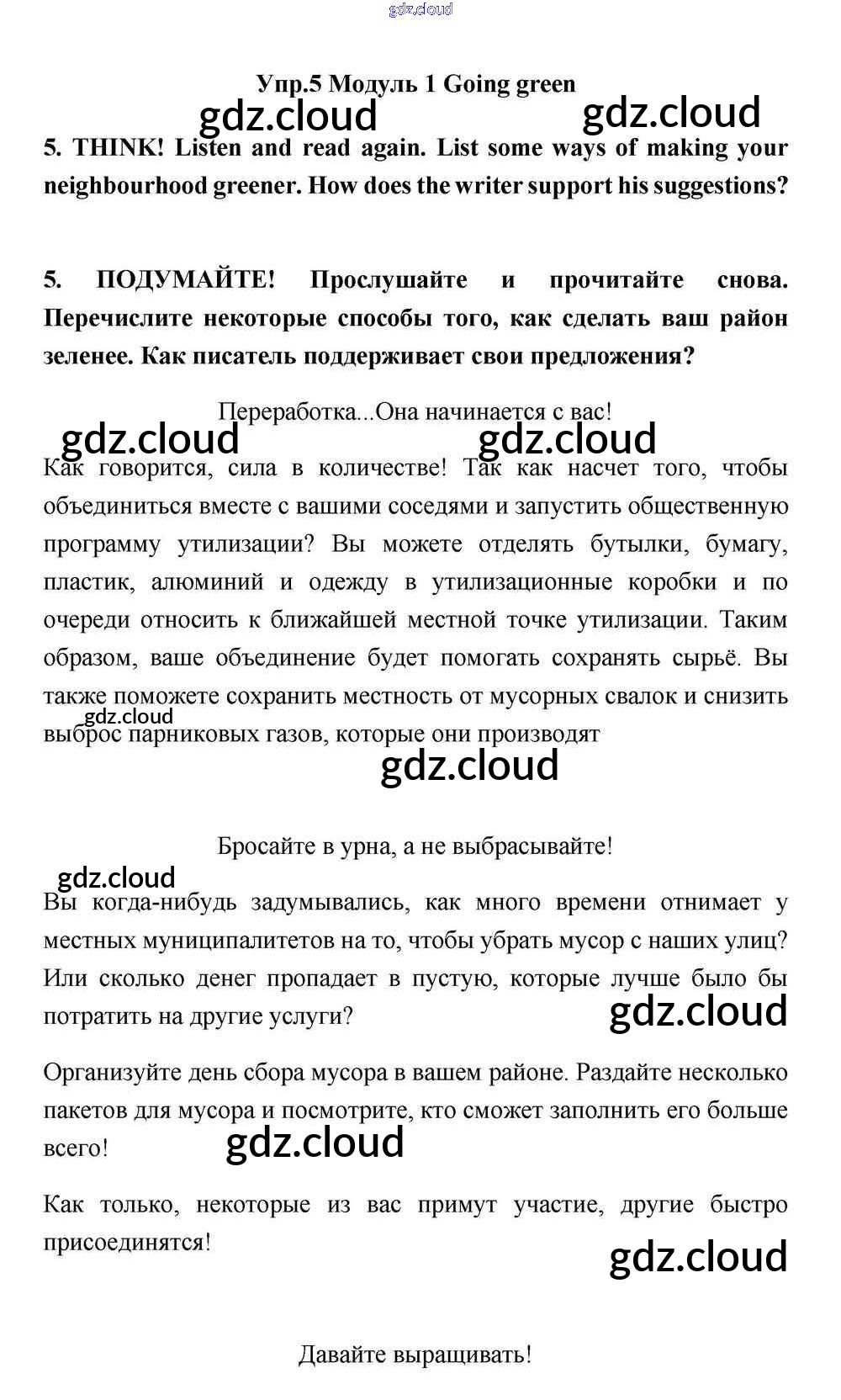 Going green Ответы к Module 1 по Английскому языку 11 класс Учебник Эванс Spotlight Просвещение