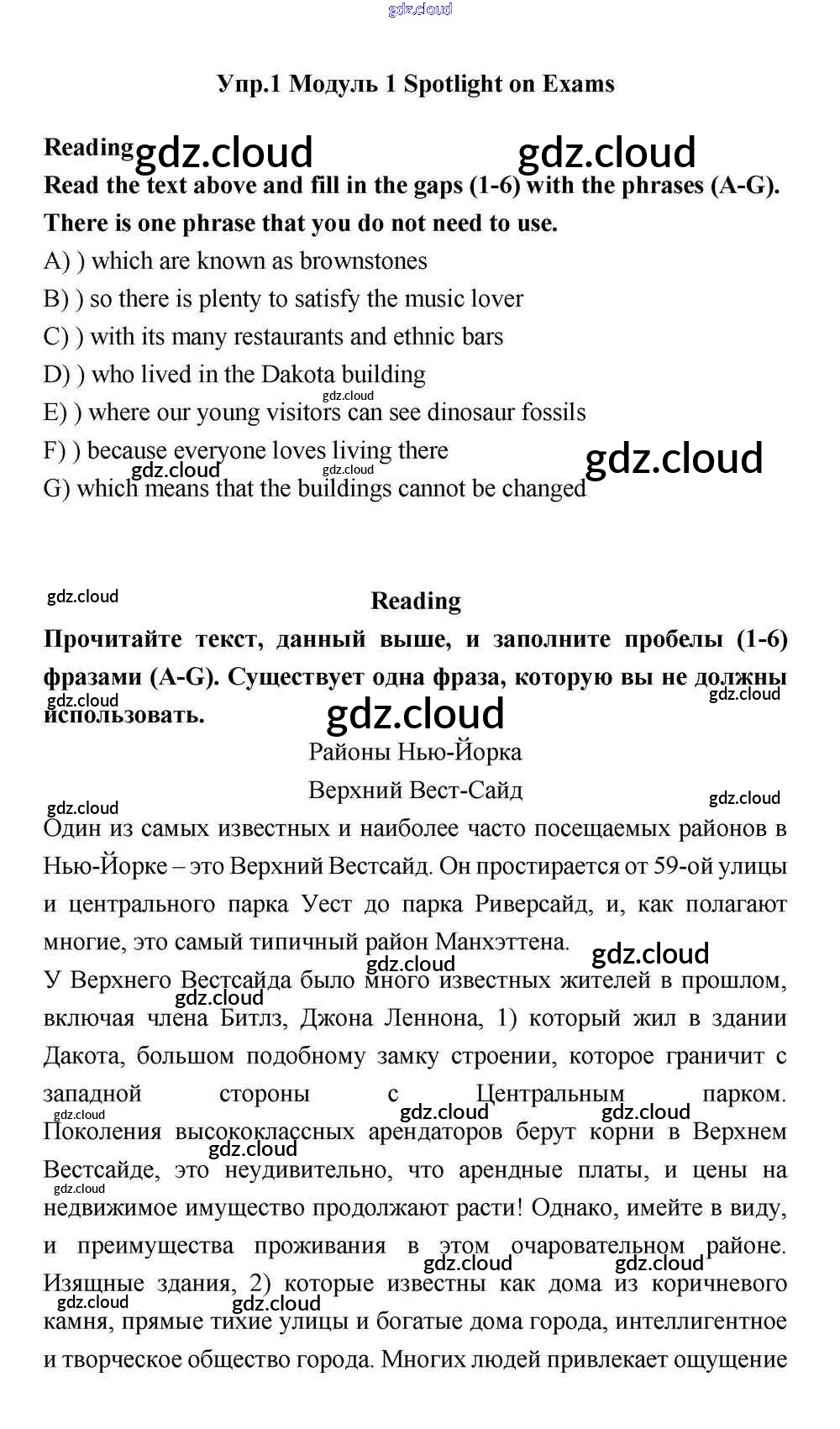 Spotlight on Exams Ответы к Module 1 по Английскому языку 11 класс Учебник Эванс Spotlight Просвещение