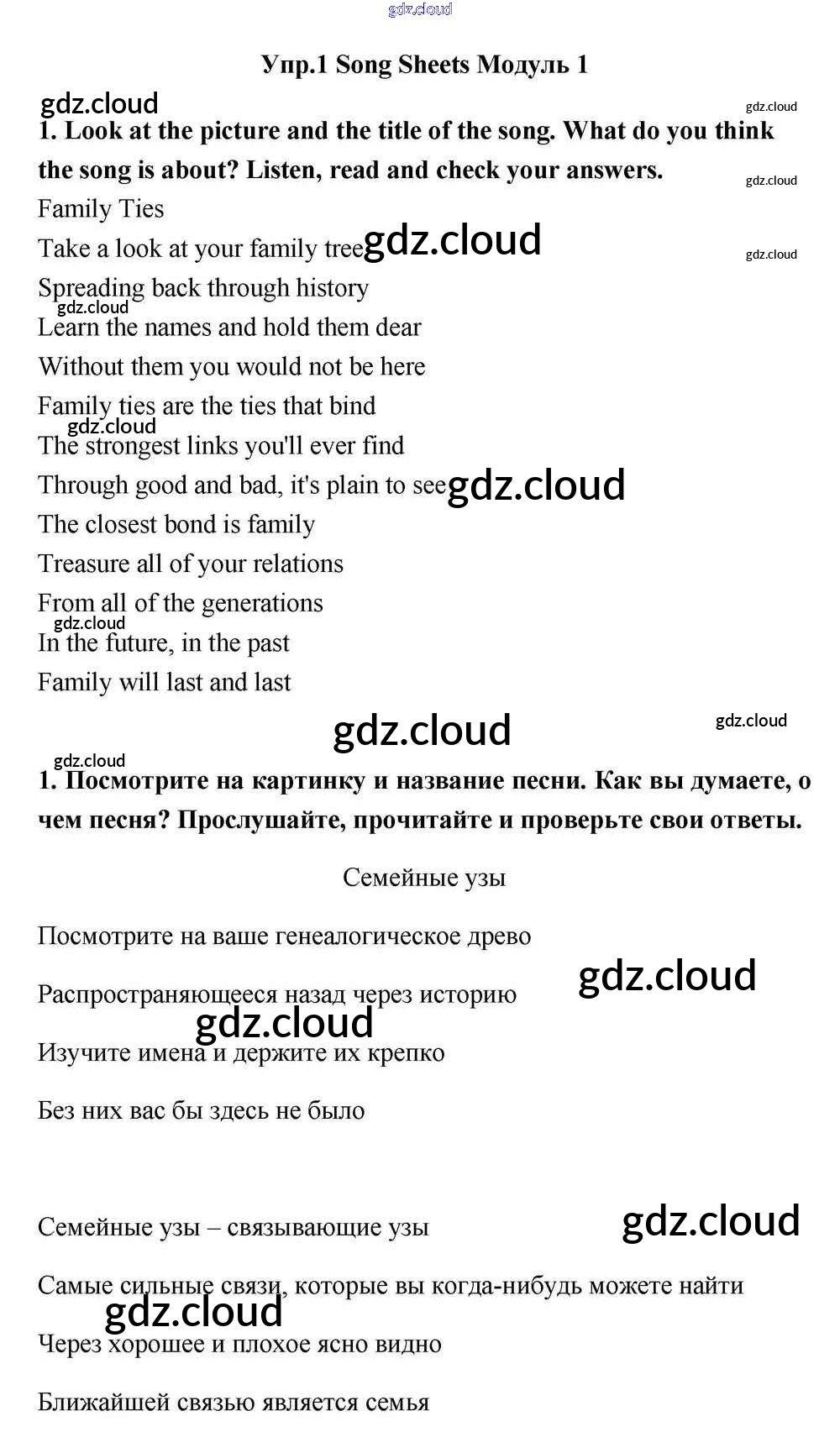 Module 1 Ответы к Song Sheets по Английскому языку 11 класс Учебник Эванс Spotlight Просвещение