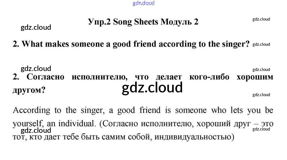 Module 2 Ответы к Song Sheets по Английскому языку 11 класс Учебник Эванс Spotlight Просвещение