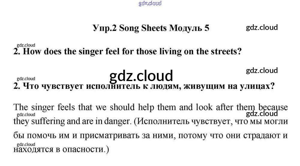 Module 5 Ответы к Song Sheets по Английскому языку 11 класс Учебник Эванс Spotlight Просвещение