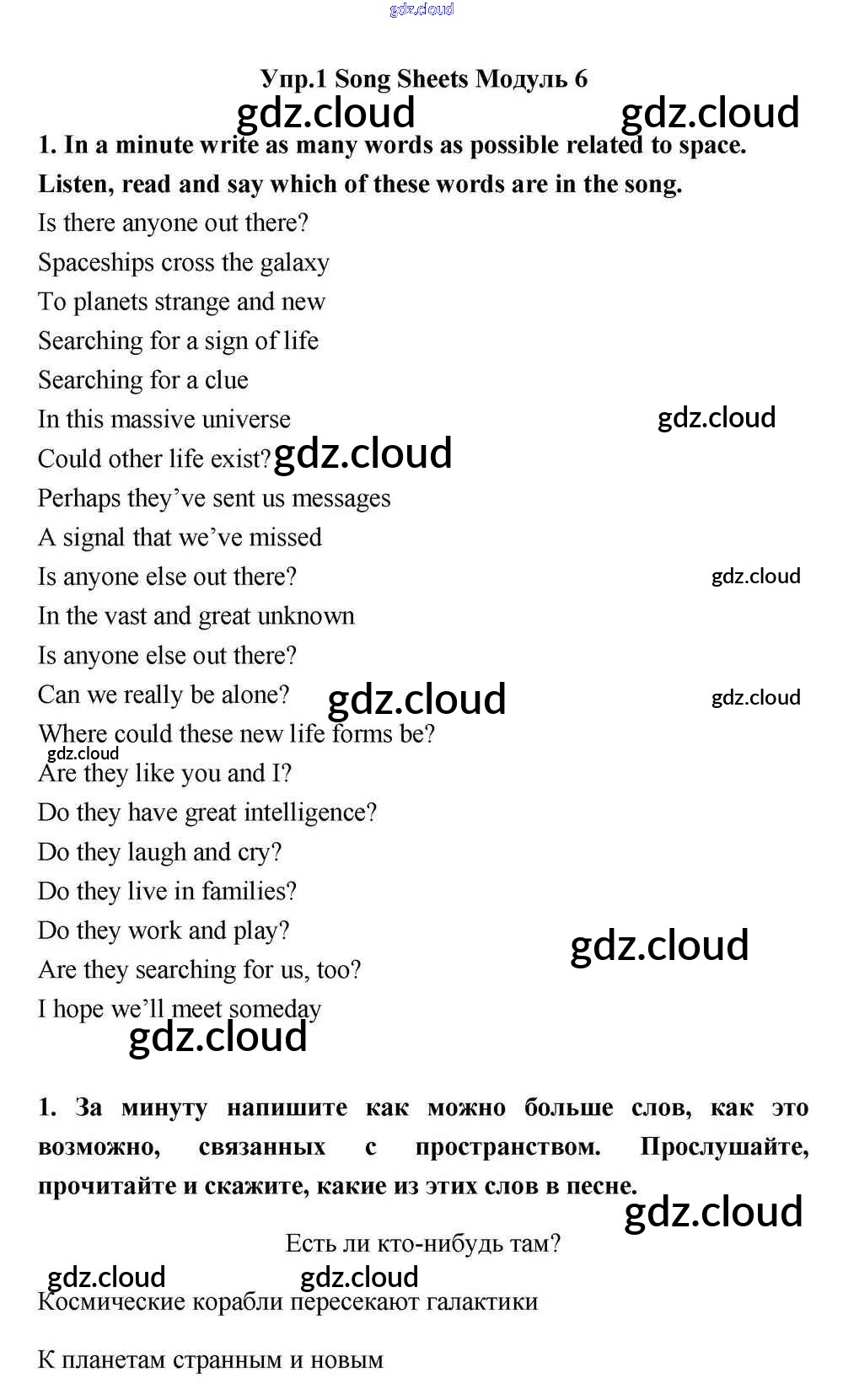 Module 6 Ответы к Song Sheets по Английскому языку 11 класс Учебник Эванс Spotlight Просвещение