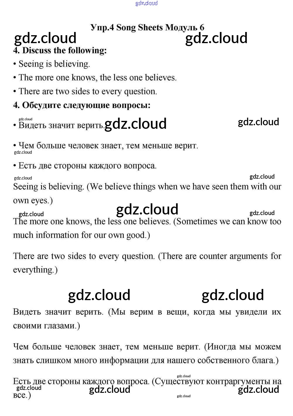 Module 6 Ответы к Song Sheets по Английскому языку 11 класс Учебник Эванс Spotlight Просвещение
