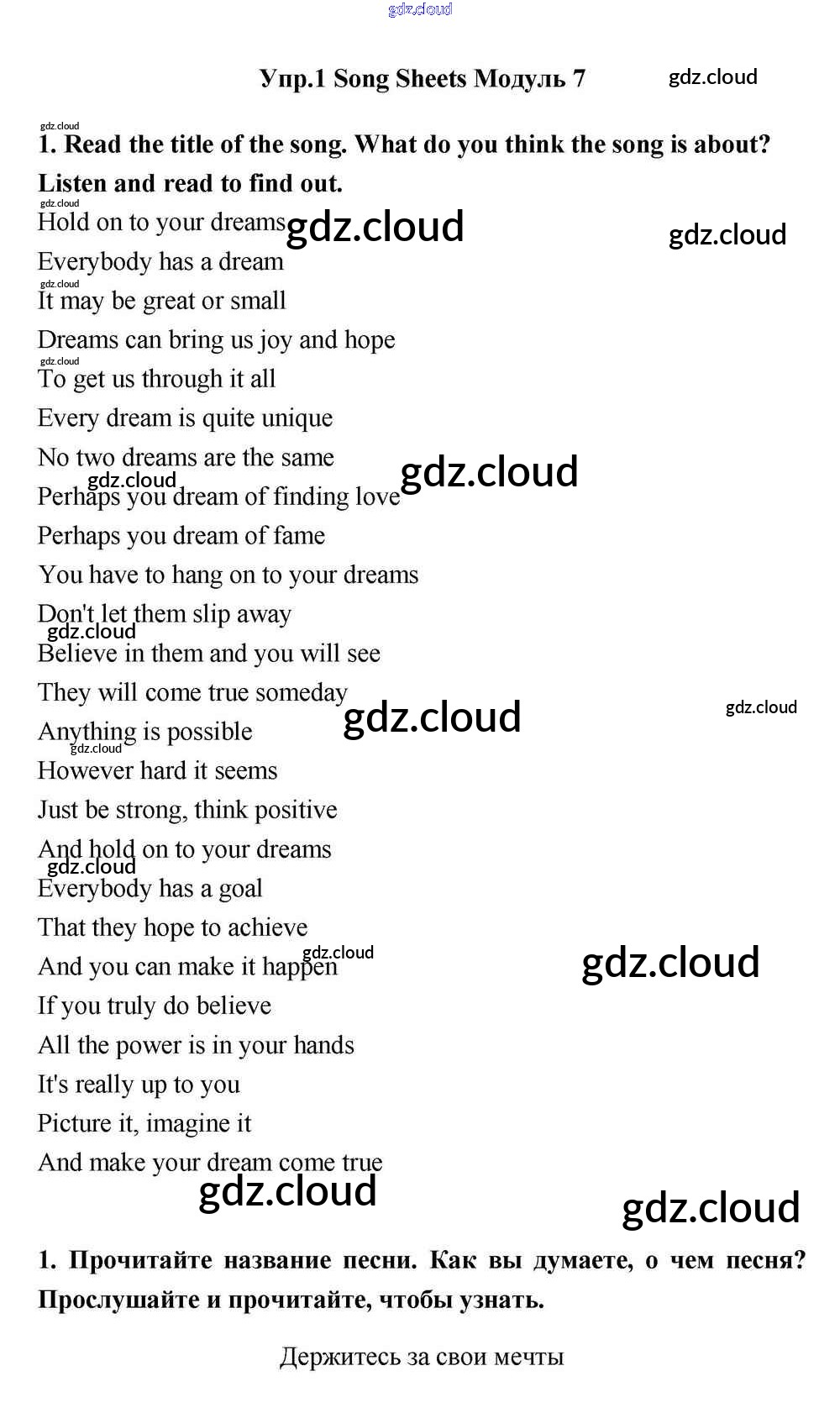 Module 7 Ответы к Song Sheets по Английскому языку 11 класс Учебник Эванс Spotlight Просвещение