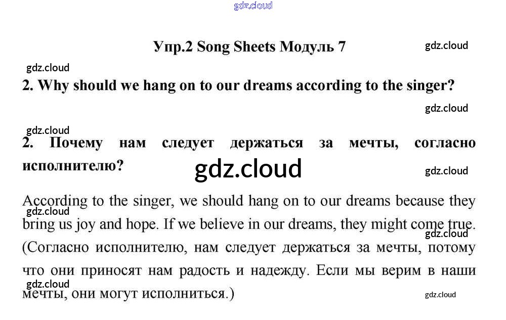 Module 7 Ответы к Song Sheets по Английскому языку 11 класс Учебник Эванс Spotlight Просвещение