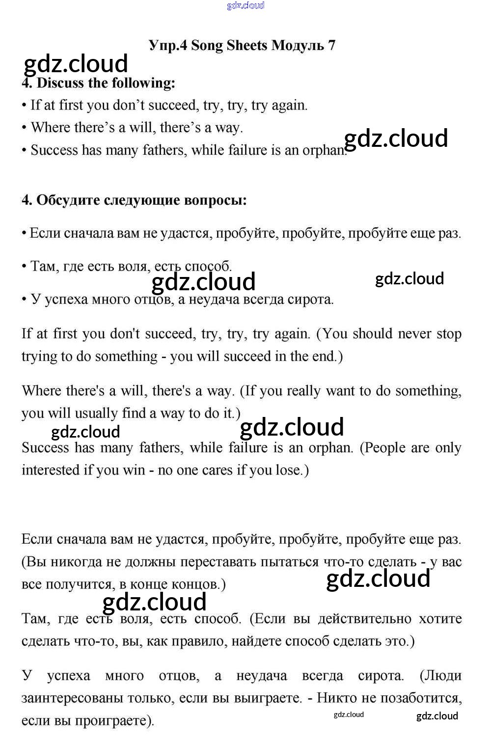 Module 7 Ответы к Song Sheets по Английскому языку 11 класс Учебник Эванс Spotlight Просвещение