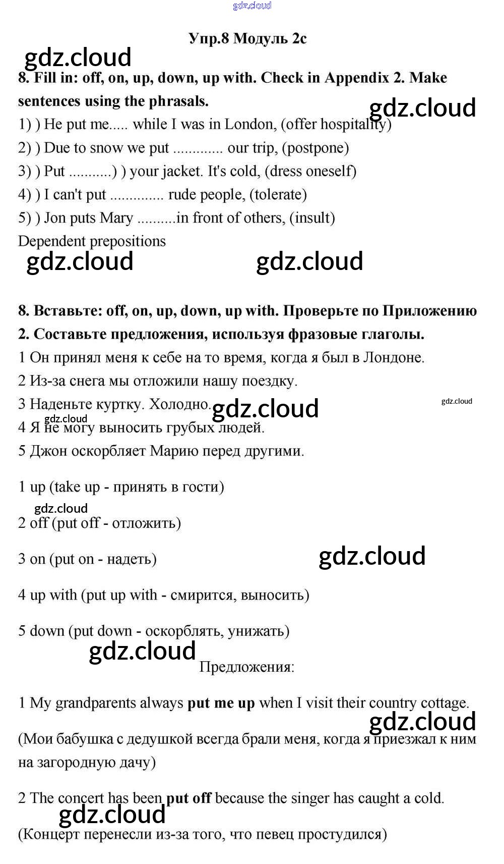 Ответ на задание 8 Учебник Английский язык за 11 (одиннадцатый) класс Эванс, Дули, Оби, Афанасьева, Михеева Spotlight 2015