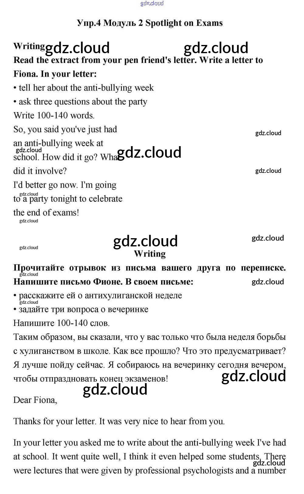 Ответ на задание 4 Учебник Английский язык за 11 (одиннадцатый) класс Эванс, Дули, Оби, Афанасьева, Михеева Spotlight 2015