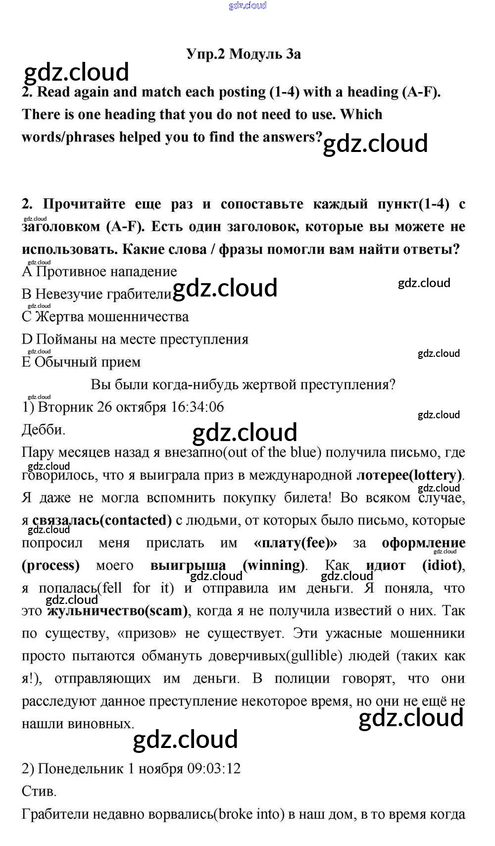Ответ на задание 2 Учебник Английский язык за 11 (одиннадцатый) класс Эванс, Дули, Оби, Афанасьева, Михеева Spotlight 2015