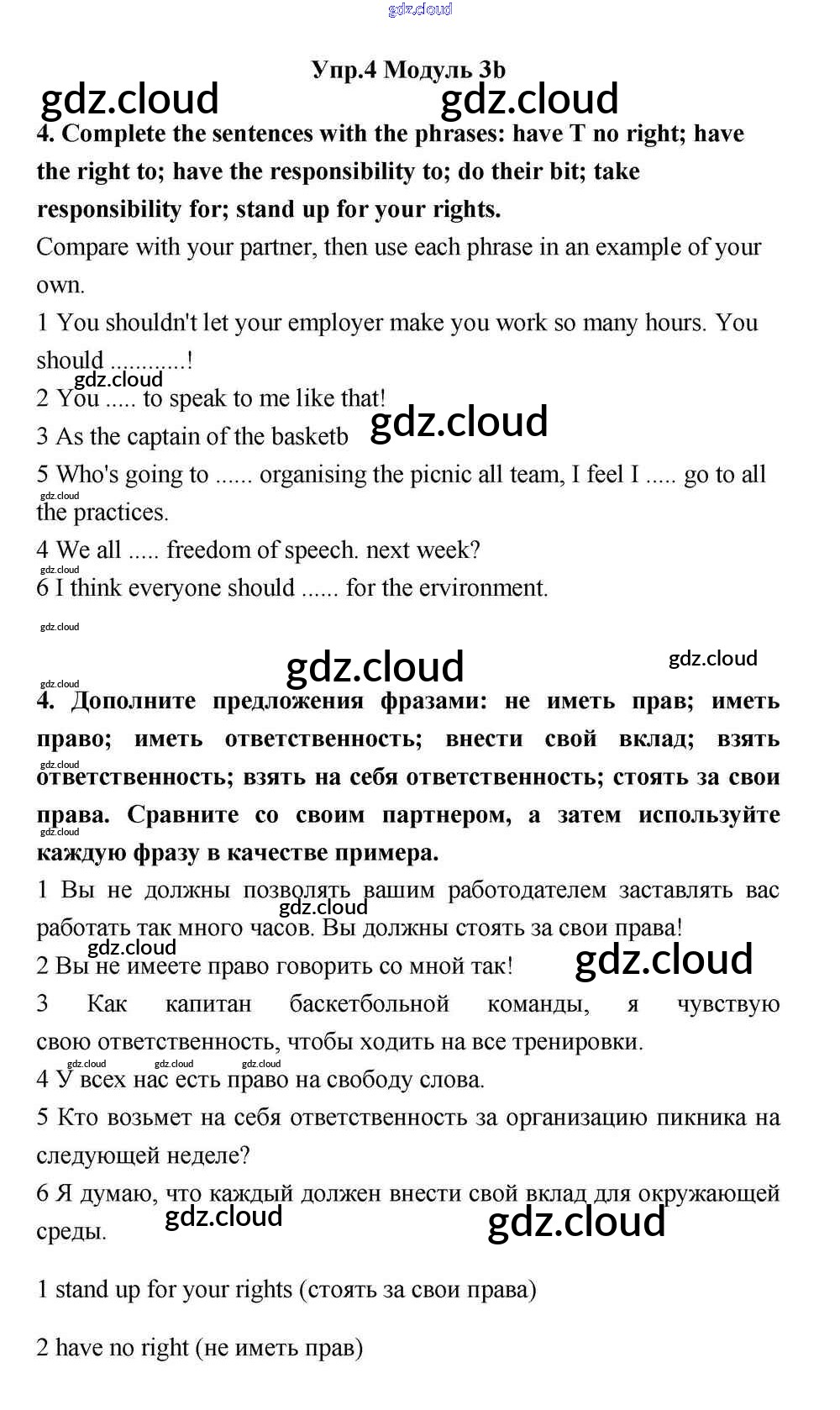 Ответ на задание 4 Учебник Английский язык за 11 (одиннадцатый) класс Эванс, Дули, Оби, Афанасьева, Михеева Spotlight 2015