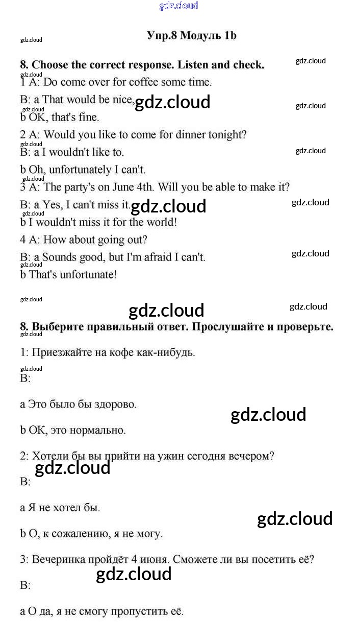 Ответ на задание 8 Учебник Английский язык за 11 (одиннадцатый) класс Эванс, Дули, Оби, Афанасьева, Михеева Spotlight 2015