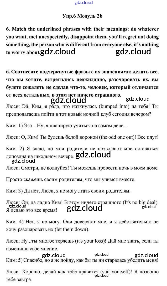 Ответ на задание 6 Учебник Английский язык за 11 (одиннадцатый) класс Эванс, Дули, Оби, Афанасьева, Михеева Spotlight 2015